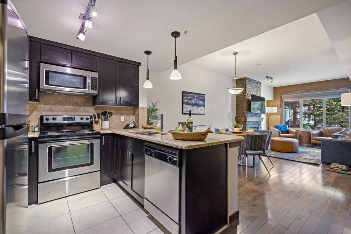¡Te damos la bienvenida a tu tranquila y elegante escapada a Canmore! Este lujoso condominio está a solo 10 minutos a pie del centro de la ciudad, con tiendas, restaurantes y senderos justo a la vuelta de la esquina. Relájate junto a la acogedora chimenea de piedra, sumérgete en una lujosa cama tamaño king o recibe huéspedes adicionales en el sofá cama de alta calidad. Disfruta de un espacio luminoso y amplio, cocina totalmente equipada, lavandería en la suite, estacionamiento de cortesía y wifi de alta velocidad de 1 GB. Ideal para la aventura o la relajación en las Rocosas.
