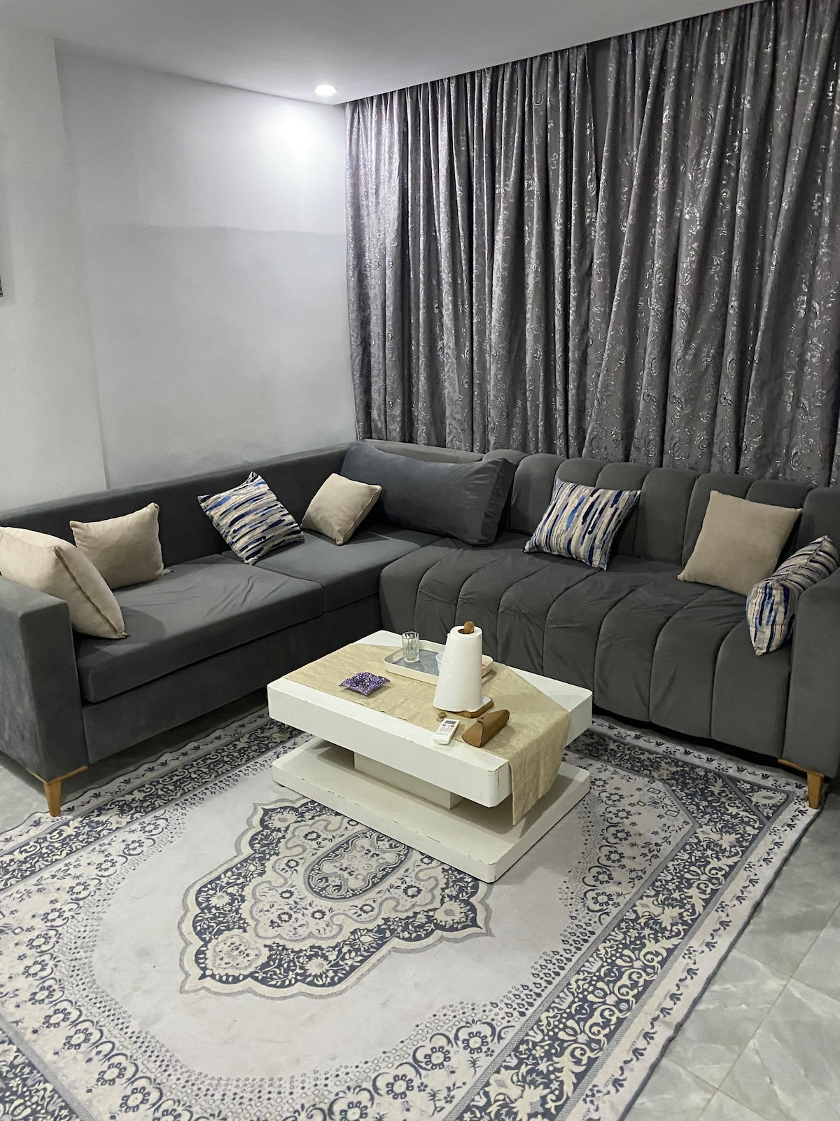 Nuevo triplex situado en la carretera panorámica de la Cornisa de Bizerta. Ofrece 2 grandes salones, dos dormitorios con cama doble, una cuna, una terraza y una cocina equipada. Cada habitación tiene su propio baño. El alojamiento está situado al principio de la carretera panorámica, a pocos minutos de la playa. Hay muchos comercios en las inmediaciones. La decoración de interiores es de estilo moderno con algunos toques orientales. Todo se hizo para ofrecer un ambiente zen y agradable.