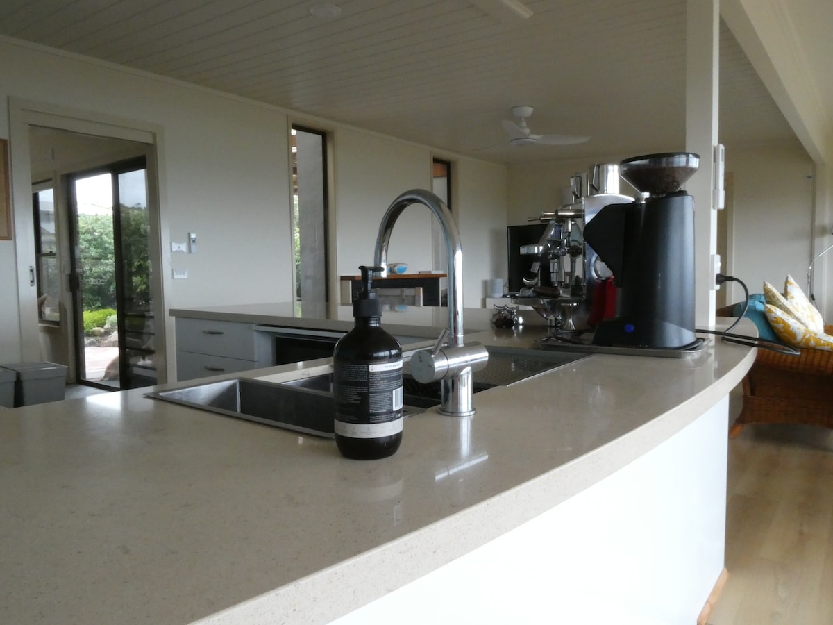 Robeathyn es una espaciosa casa de playa de 4 dormitorios situada en un cabo con amplias vistas a Discovery Bay y al océano Austral. La casa es una de las dos ubicadas en 10 acres de matorral natural y acceso cercano a la Gran Caminata del Suroeste. Ideal en todas las estaciones; puedes disfrutar de las puestas de sol con crestas oceánicas en el amplio patio mientras bebes un vino o dos, o puedes acurrucarte alrededor del fuego y disfrutar de la misma vista increíble desde la sala de estar.