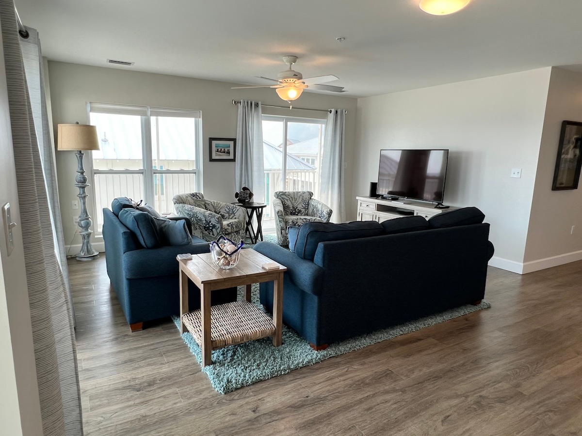 Maravilloso apartamento de 3 dormitorios/3 baños con literas dobles extragrandes enfrente de la playa. ¡A 1 minuto a pie de la playa! Tiene 2 balcones cubiertos, 1 fuera del salón comedor y 1 balcón privado fuera del dormitorio principal. ¡Siéntate afuera llueva o haga sol! Enorme mesa de comedor para comer o jugar con barra para asientos adicionales (o configurada como espacio de trabajo). Se proporcionan 4 sillas de playa, tienda de campaña y juguetes de playa. No se proporcionan toallas de playa. Cuenta con piscina comunitaria y jacuzzi. La edad mínima es de 25 años.