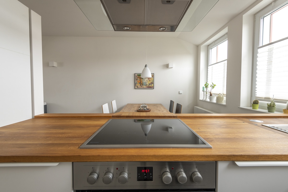 Un lugar especial para hospedarte con un carácter de loft. Un loft diseñado con mucho amor por los detalles con una cama doble y un sofá cama para 3-4 personas. Un amplio baño con bañera/ducha. Espacio abierto con cocina independiente. Espacio privado al aire libre con mesa y sofá de jardín. A pesar de ser una propiedad compartida con una casa histórica, completa independencia y privacidad. Para los amantes de la naturaleza, un refugio perfecto en el borde del bosque. A 8 minutos del lago Baldeney. Transporte público (a 5 minutos del autobús/a 14 minutos del S-Bahn)