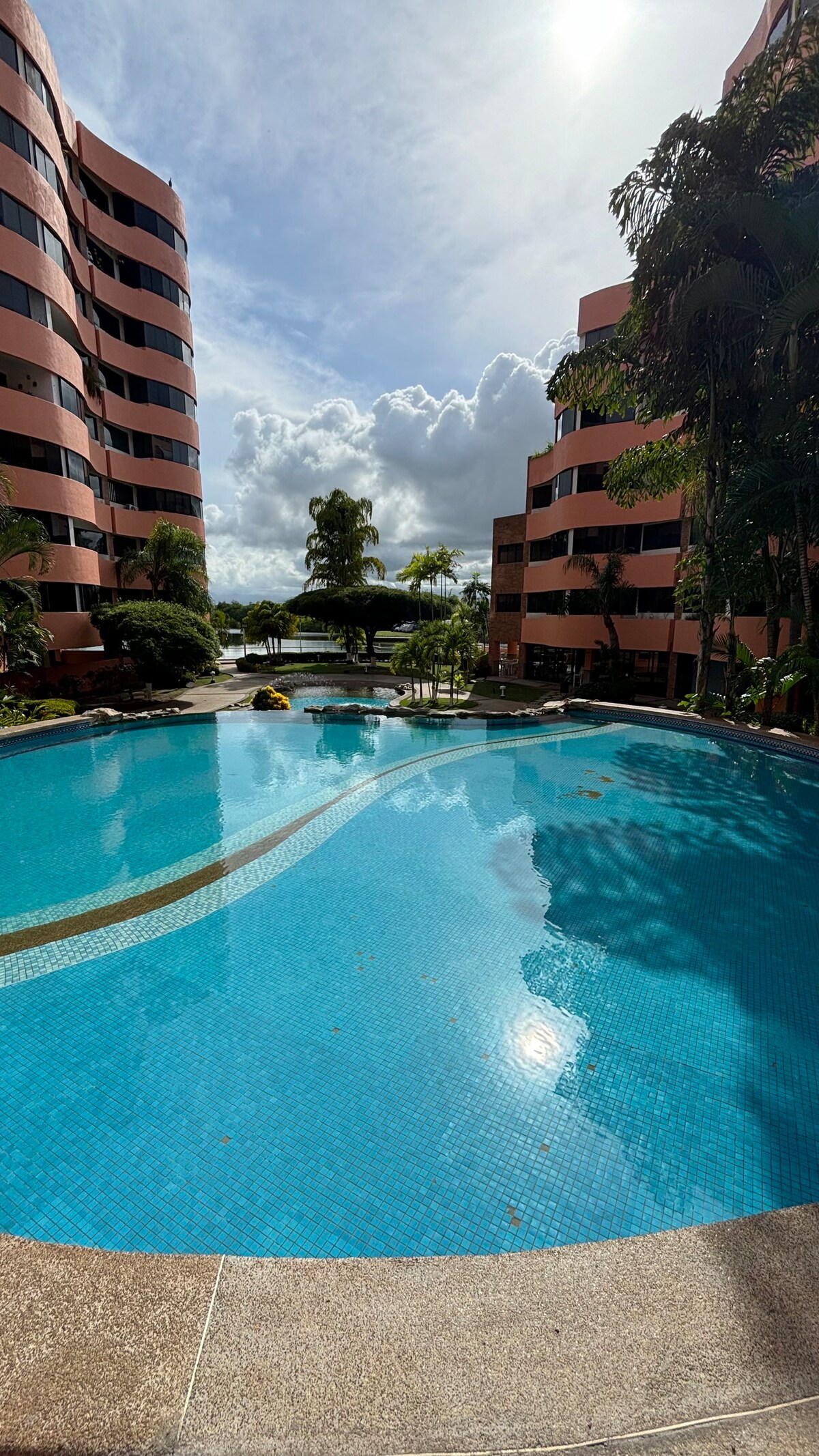 Hasta 5 personas – 2 habitaciones – 2 baños – Piscina + Tobogán – Acceso directo al mar Disfruta unos días increíbles en uno de los condominios más completos de Higuerote. Aquí lo tienes todo: piscina enorme, áreas verdes, vista al mar y un tobogán que encanta a grandes y pequeños.