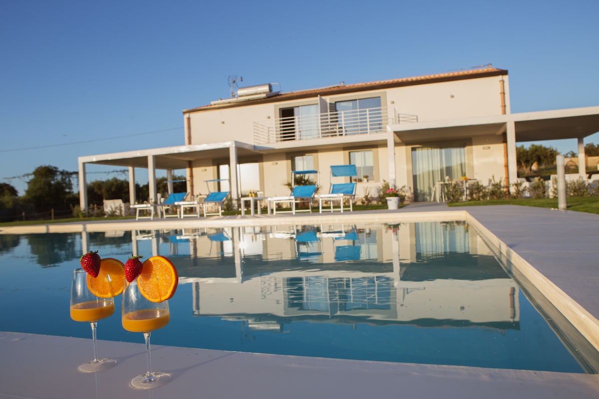 La villa, rodeada de jardín, plantas ornamentales y olivos centenarios, dispone de amplios espacios al aire libre. Ofrece al huésped la posibilidad de pasar momentos de intensa relajación. Servicios exclusivos como piscina enterrada de última generación con sistema de electrólisis de sal, abierta día y noche. Cerca del aeropuerto de Palermo, a pocos minutos en coche del mar, goza de una ubicación ideal para llegar a los maravillosos destinos turísticos de nuestra Sicilia. Wi-Fi ultrarrápido gratuito