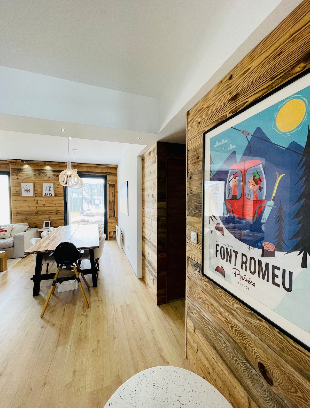 «Montagne & Prestige» es una casa rural con encanto (8 personas) situada en Font-Romeu Odeillo, en el corazón del casco antiguo de Font-Romeu, que se beneficia de las zonas montañosas y de las actividades cercanas (esquí, senderismo, pesca, golf, ciclismo de montaña, escalada, baños naturales de agua caliente…). La casa, que se extiende sobre casi 100 m2, es el resultado de una renovación de calidad que acaba de finalizar en enero de 2017. La casa consta de 3 habitaciones con sus baños privados. La casa está equipada con todas las comodidades modernas (horno, placa de inducción, microondas, lavavajillas, lavadora, secadora, internet). La madera y la piedra le dan a este lugar un ambiente lujoso y cálido. Ubicada en su entorno montañoso, la casa de campo le ofrece una estancia con un encanto auténtico. Situado en los balcones de Cerdanya, tranquilo, se encuentra frente a los Pirineos catalanes con una gran vista.