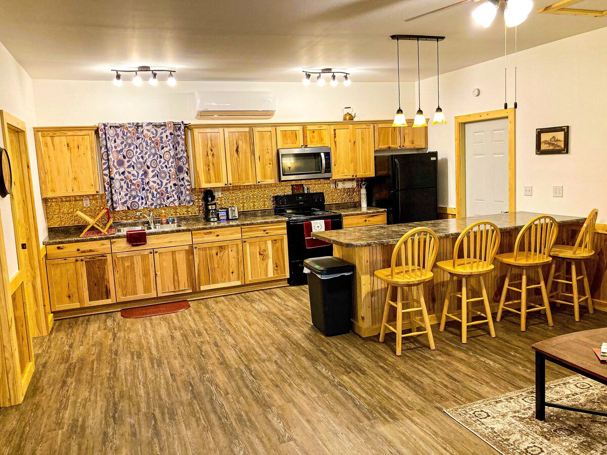 ¡Te damos la bienvenida a nuestra casa Hilltop Ranch! Encontrarás una escapada relajante para toda tu familia o varias parejas. Hay 1800 pies cuadrados en el primer piso que incluyen un dormitorio principal con baño privado que cuenta con una bañera de hidromasaje, una cocina totalmente equipada, chimenea de gas y un garaje adjunto para 2 coches. En el sótano hay un cuarto dormitorio, baño completo y una zona de televisión. Un patio contiguo al comedor, una parrilla de carbón y una bañera de hidromasaje de tamaño completo, todo perfecto para entretener a todo tu grupo.