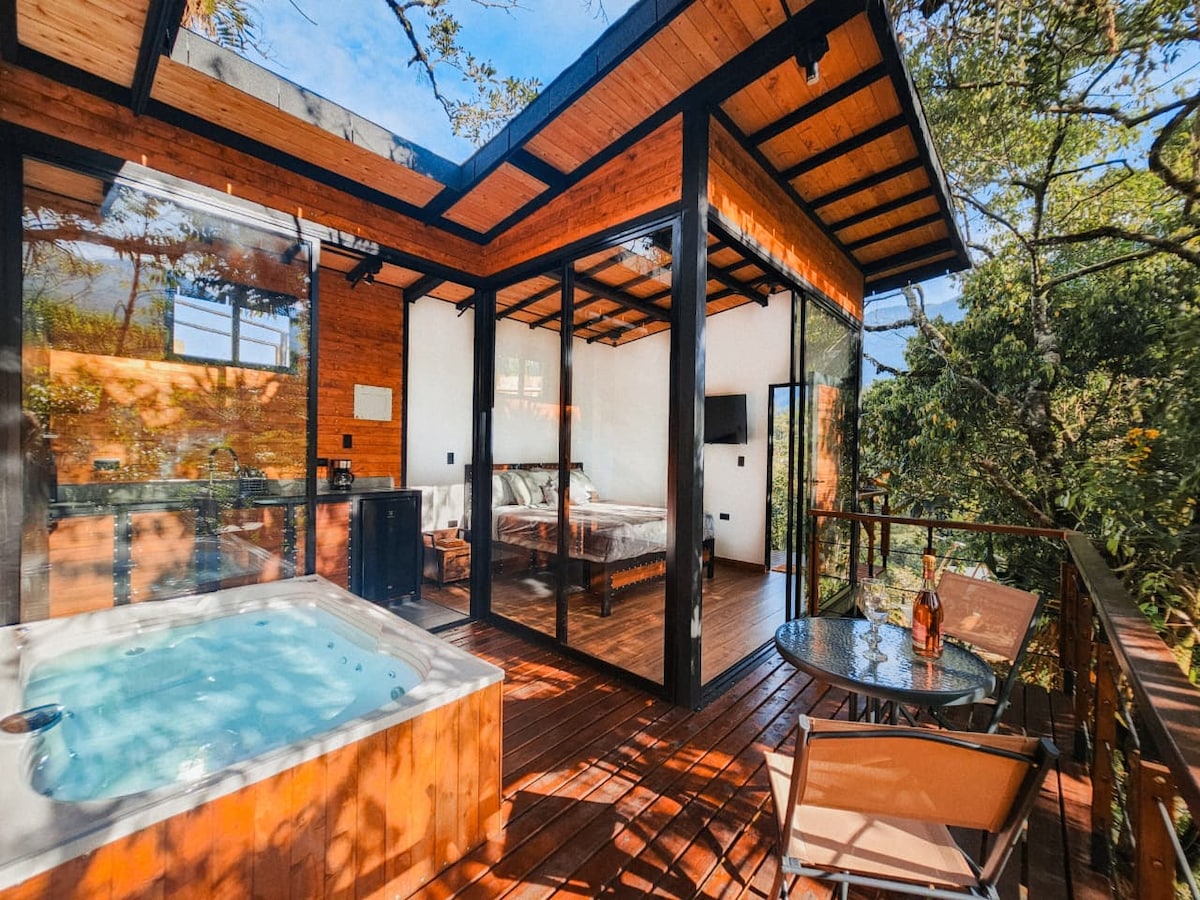 Disfruta de una privacidad increíble en la hermosa naturaleza de Cocorná. Relájate en el jacuzzi o disfruta del hermoso río con una terraza privada junto a una piscina creada naturalmente que pertenece exclusivamente a esta propiedad. La cabaña cuenta con un hermoso baño, una cama tamaño king, Wi-Fi, un televisor con Netflix y una cocina equipada con todos los utensilios de cocina, incluida una barbacoa. También organizamos diversas actividades, como parapente y rafting. Ofrecemos transporte. ¡El desayuno está incluido! (para preparar)