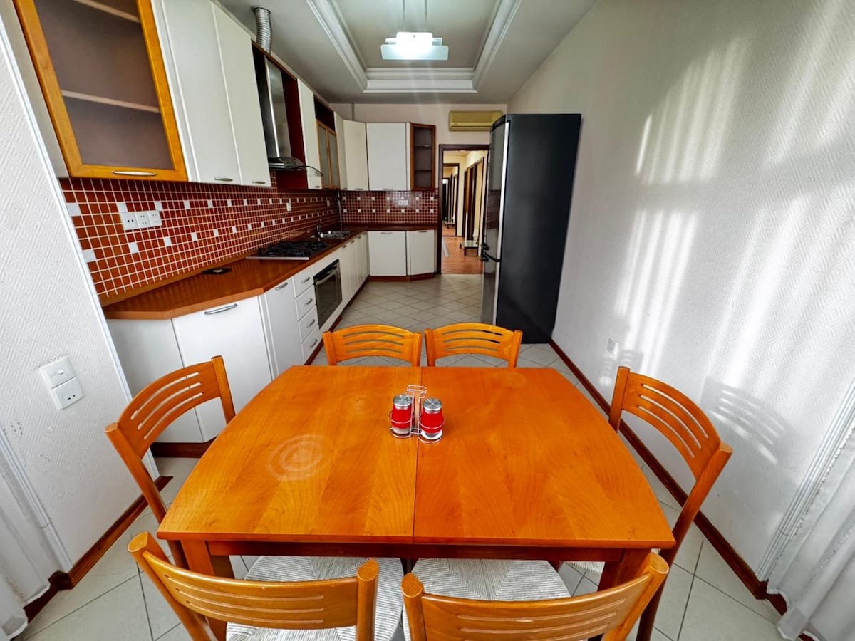 Este apartamento de 240 metros cuadrados ofrece una vida lujosa en el corazón de la ciudad. Con tres dormitorios y una sala de estar, es perfecto para familias o aquellos que disfrutan de la diversión. Ubicado en una ubicación céntrica privilegiada, estarás a solo unos pasos del centro comercial Port Baku, el centro comercial Crescent, el hotel Absheron Marriott, restaurantes y tiendas.