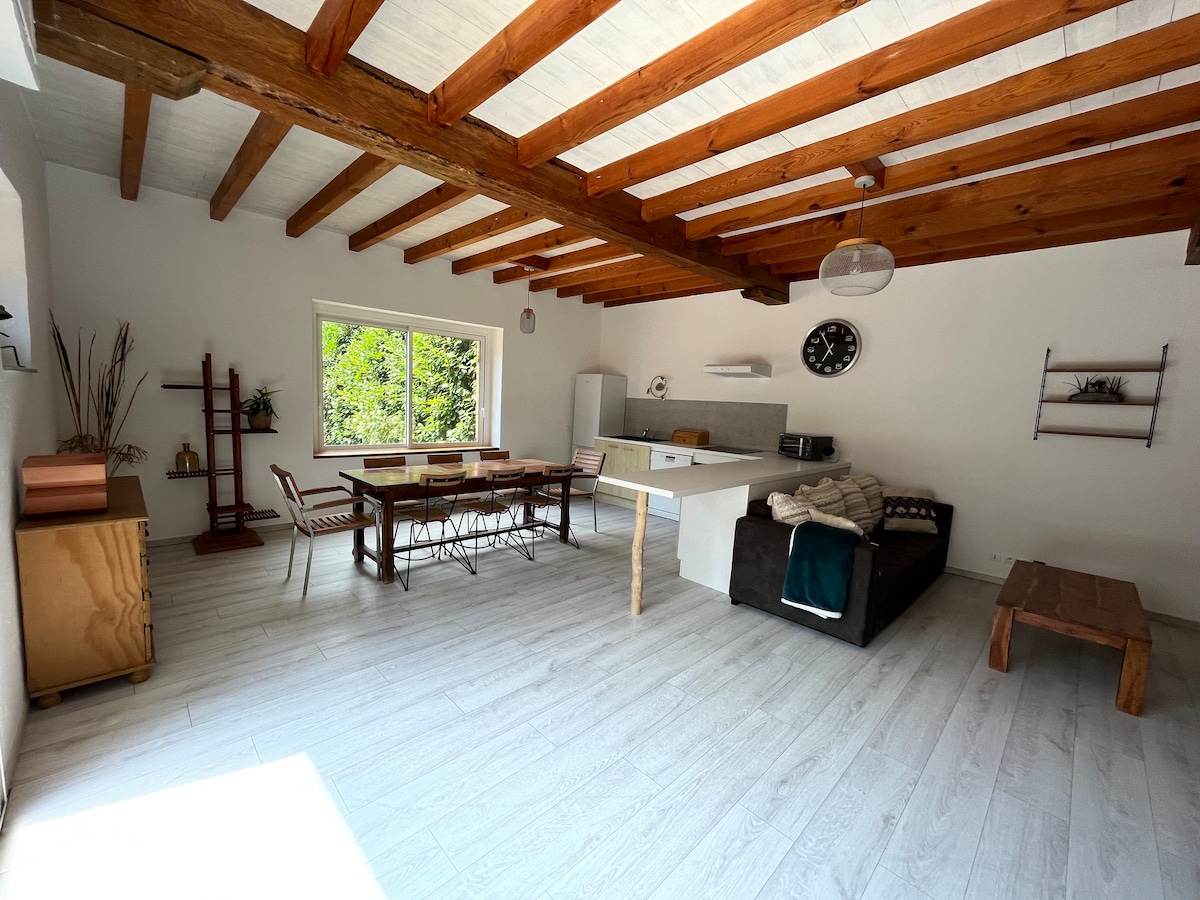 Naturaleza y serenidad: disfrute en familia o con amigos de este encantador alojamiento nuevo en el corazón de las Landas, a solo 20 minutos del océano y de Dax. en el pueblo de Taller, con una ubicación ideal para disfrutar de las vacaciones en las Landas, o para curistas o trabajadores,
