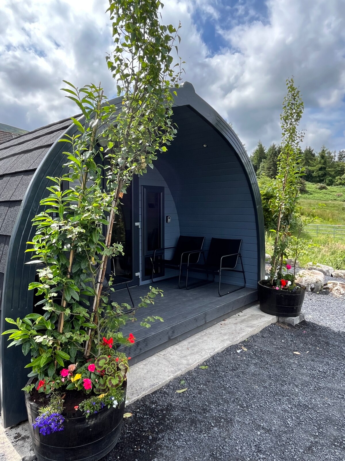 Relájate en el precioso Hideaway Pod. Disfruta de sus pintorescos alrededores. Relájate en nuestro jacuzzi y siéntete renovado después de un baño de hielo. Al caer la noche, disfruta del romántico entorno y contempla las centelleantes estrellas en el cielo. Acomódate en nuestra cama doble, con ropa de cama y toallas frescas. Disfruta de tu escapada de la vida diaria al campo. Sin embargo, estás en el centro de la ciudad de Naas. Ciudad a 1 km. Punchertown a 1 km Hipódromo de Naas a 1 km. Tiendas outlet de Kildare a 18 minutos Aeropuerto de Dublín a 37 minutos.