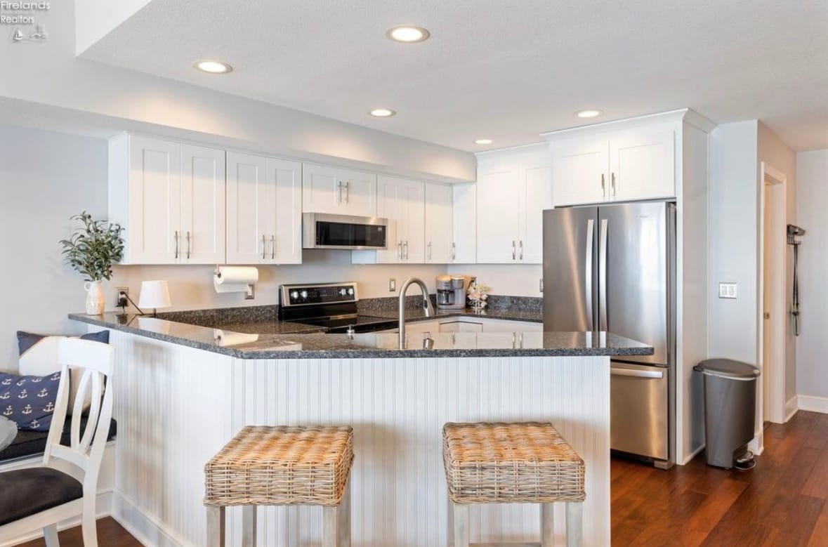 ¡Renovación interior completa en 2025 y muebles nuevos! Increíble espacio al aire libre con parrilla y muchos asientos al aire libre. Excelente ubicación a poca distancia a pie de parques, el lago Erie y todas las comodidades de Lakeside. Estacionamiento privado para hasta 3 autos. Cocina totalmente equipada, lavavajillas, cocina de inducción, refrigerador de puerta francesa con hielo y agua filtrada, microondas, lavadora/secadora. TV y wifi. Baño con ducha/inodoro y tocador separado. 2 dormitorios, 1 porche para dormir, capacidad para 6 personas.