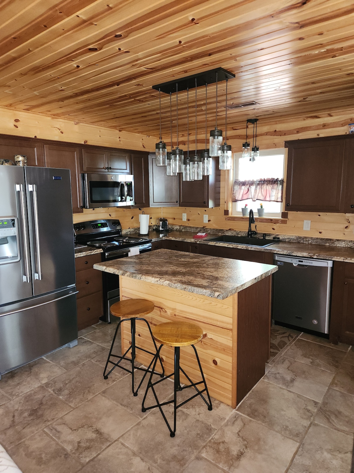 La cabaña de troncos totalmente amueblada tiene capacidad para 5 a 6 adultos cómodamente con una cama tamaño queen y tres camas individuales. Los servicios adicionales incluyen: nevera completa, estufa nueva, microondas, cafetera, lavadora/secadora y TV pequeña. Hay un baño completo abajo con ducha y bañera. La cabaña se encuentra en un rancho en funcionamiento rodeado de bosques y pastos con parcelas de alimentos y estanques de vida silvestre. Es un lugar fantástico para practicar 4x4. Estamos muy cerca de 2 ríos que son ideales para hacer kayak.