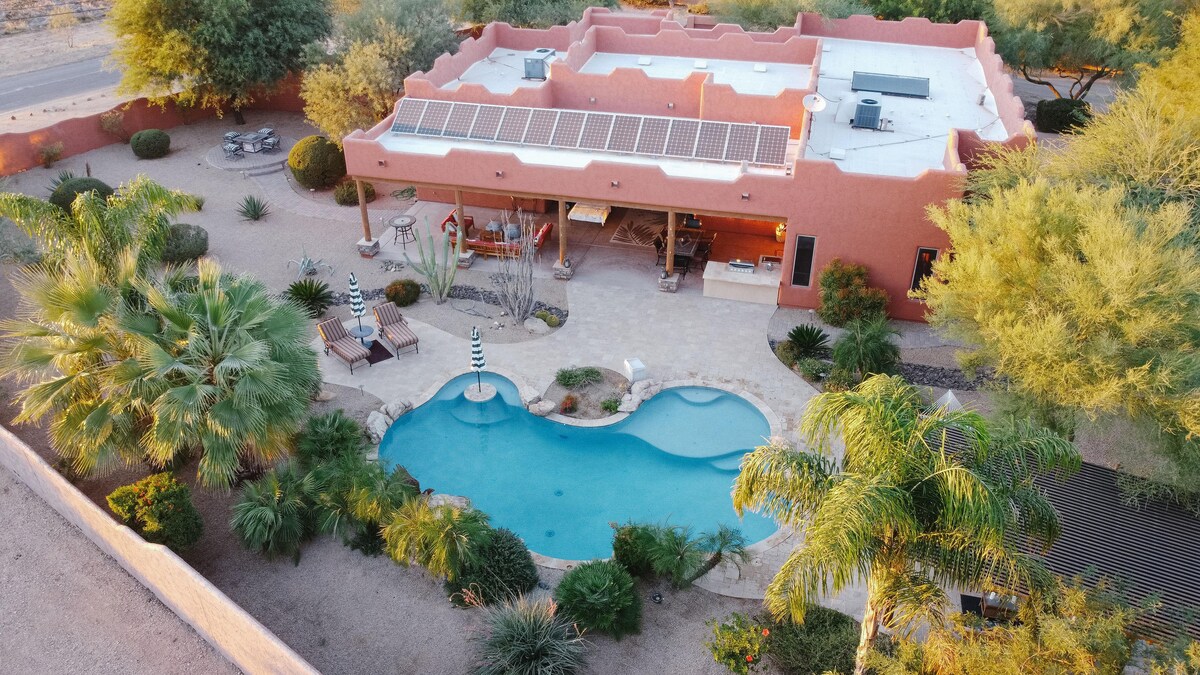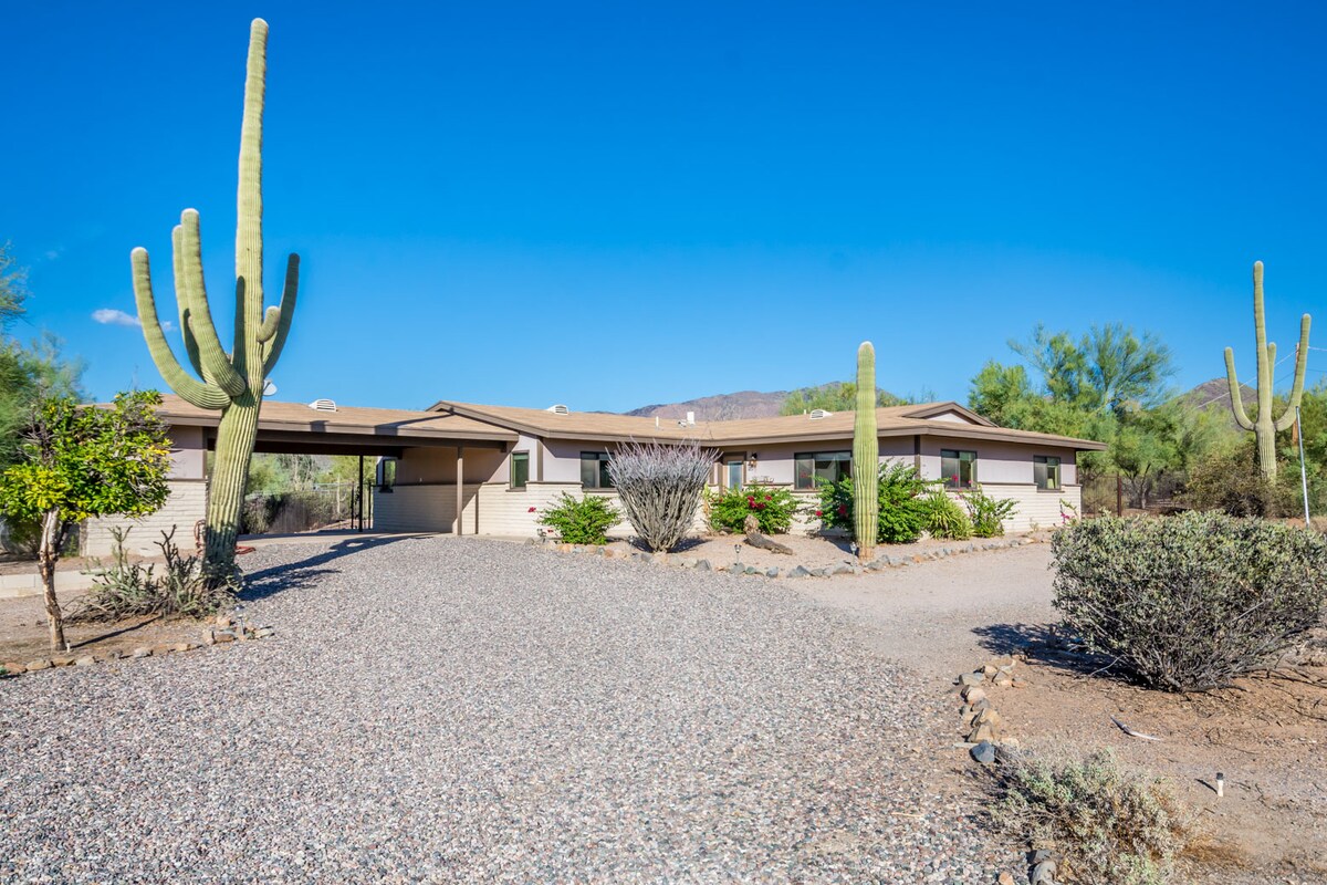 Bienvenido a Casa Cactus, una moderna villa de inspiración bohemia de nueva construcción ubicada en el Parque Nacional Tonto en Scottsdale. Saguaro de🌵 30 pies: ¡está justo en nuestro patio trasero! ¡Y se estima que tiene más de 150 años! ✨ Observación de las estrellas y astronomía Paisaje 🏜 infinito de montaña y desierto Amaneceres y atardeceres🌅 inolvidables. 📽 Proyector y pantalla para ver al aire libre. Toma de🔌 30 amperios para vehículos eléctricos y autocaravanas Chimenea 🔥 interior Roku TV📺 grande Wifi de más de📶 80 Mbps 📏 2200 pies cuadrados, 4 dormitorios