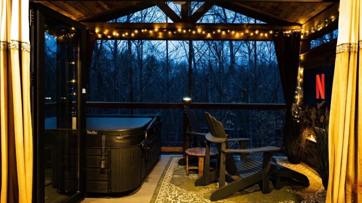 Nuevo jacuzzi cubierto romántico solo para adultos con TV y chimenea