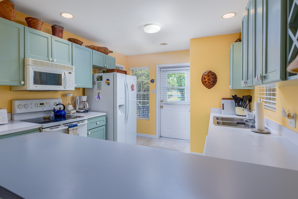 Encantadora casa de campo Cayman de 2 dormitorios a pocos pasos de Cemetery Beach. La playa y el esnórquel están a solo unos pasos. Cerca de la zona del centro vacacional y de George Town, pero lo suficientemente lejos de todo el ajetreo. Camina hasta la tienda de comestibles, la licorería, los restaurantes y la parada de autobús. Un cómodo salón, amplia cocina, 2 BR y 1 BA, camas tamaño queen y dos camas individuales. Zona de terraza al aire libre para cenar al aire libre o café por la mañana. Lavadora y secadora, aire acondicionado, WiFi. Es un lugar estupendo para escapadas familiares.