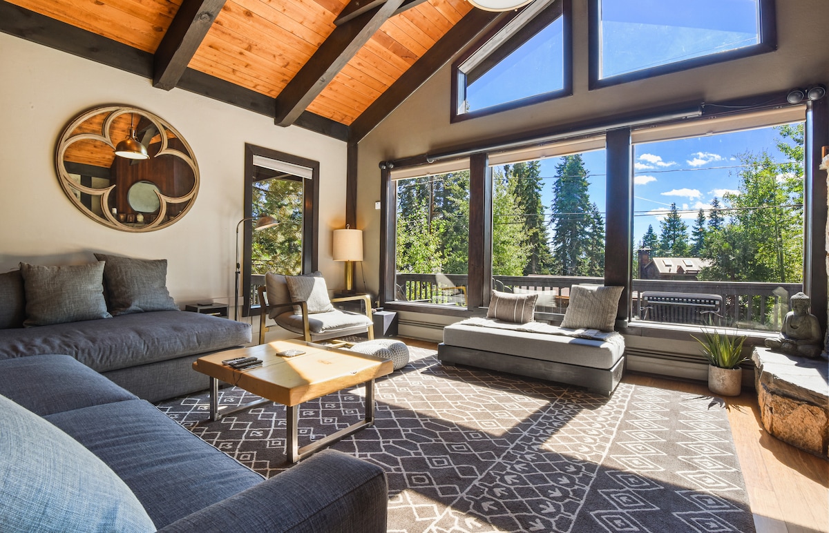 Perfecto para una escapada romántica y aventurera. Disfruta de tu café por la mañana en la terraza privada muy por encima del suelo del bosque. ¿Listo para caminar o montar en bicicleta? No necesitas coche, el patio trasero conduce a los senderos del parque estatal Burton Creek y al sendero Tahoe Rim. O conduce 5 minutos hasta las mejores playas de North Shore, sillas y sombrillas incluidas. ¿Un baño caliente en el jacuzzi seguido de una hora feliz en la terraza? Disfruta de la noche en tu espacioso, luminoso y ventilado apartamento privado, con cocina totalmente equipada.
