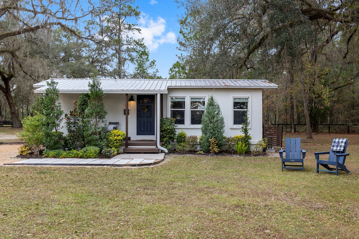 Una escapada tranquila en medio del país de los caballos de Ocala. Nuestra cabaña renovada tiene 1 dormitorio (queen)/1 baño, cocina, lavandería nueva, sala de estar y comedor e internet de alta velocidad. Hemos pensado en todo para que tu estancia sea agradable. Observa a los caballos pastar en los potreros desde tu porche delantero o haz un pícnic al aire libre. Si estás de visita para un espectáculo de caballos, estamos justo enfrente de HITS y a 10 minutos de WEC. Estamos a 30 minutos de Rainbow y Silver Springs, a 20 minutos de Canyons Zip Line y a 15 minutos de Devil's Den.