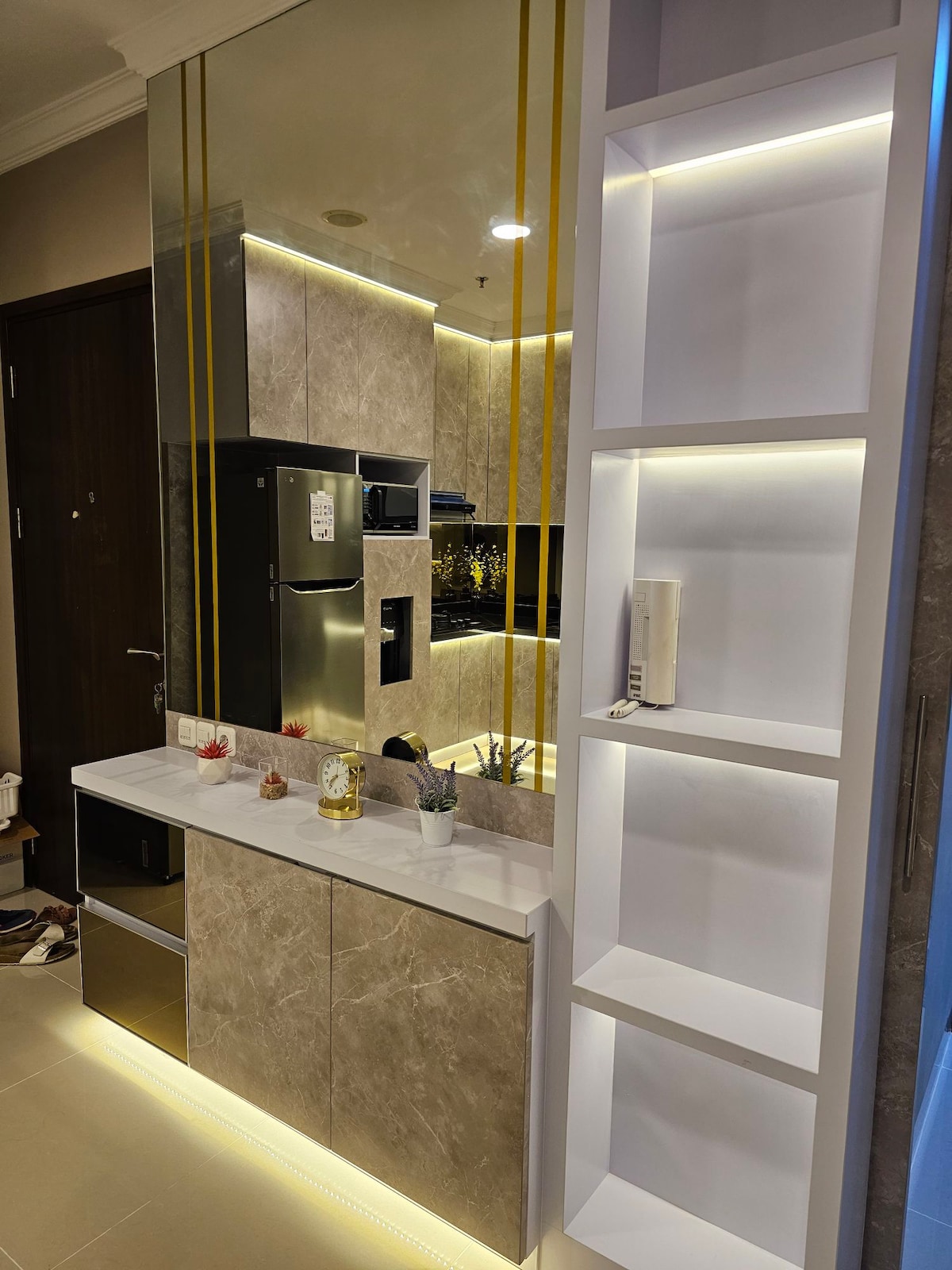 El nuevo apartamento Super Penthouse en St.moritz con ascensor privado se encuentra en Superblock St.Moritz, oeste de Yakarta y conecta Lippomall Puri Indah, torre de oficinas, muchas instalaciones, muy buenas y fáciles para viajes de negocios o vacaciones. Tienes privacidad cuando te alojas en el apartamento, puedes unirte a familiares y amigos. Todas las habitaciones están equipadas con toalla, ropa de cama y manta. Puedes cocinar con estufa, agua potable gratuita, WIFI gratuita y televisión por cable en casa. Excelente ubicación. Instalaciones como piscina, gimnasio