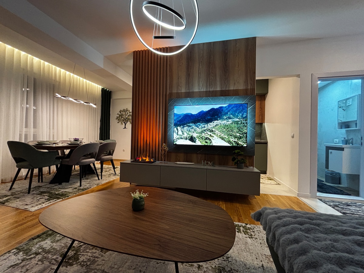 This stylish place to stay is perfect to feel the luxury of living. Located centrally, but in a calm part, offers you everything you need during your stay. Featuring a spacious terrace with a city and mountain views, it offers 2 bedrooms plus one additional, a living room with a stylish indoor fireplace, fully equipped kitchen, 1 bathroom and additional separate toilet, free WiFi and cable flat ambilight TV. Private parking free of charge is available in the underground garage.