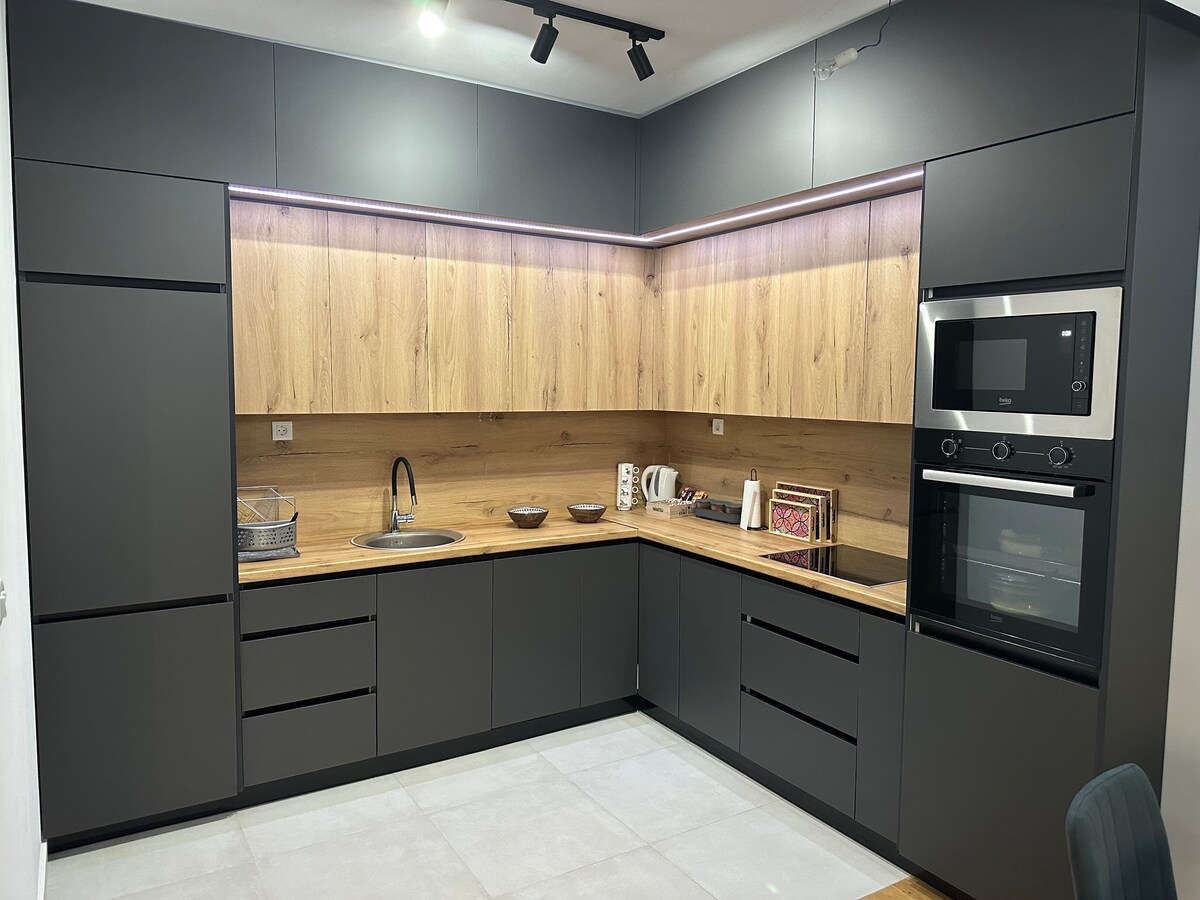 ¡Bienvenido a tu hogar perfecto lejos de casa! Este encantador apartamento de un dormitorio ofrece un acogedor refugio con todas las comodidades que necesitas para disfrutar de una estancia relajante. Ubicado en uno de los barrios más antiguos de Skopje, el espacio cuenta con una amplia sala de estar y dormitorio con comodidades modernas y una cocina totalmente equipada. Ya sea que estés aquí por negocios o placer, disfruta de un entorno tranquilo y elegante a solo 10 minutos a pie del Bazar Viejo y a 5 minutos a pie del centro comercial más grande: ¡East Gate!