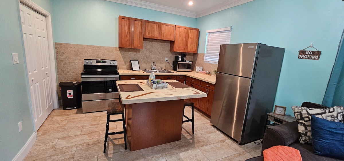 ¡Te damos la bienvenida a tu hogar lejos de casa! Este acogedor y lujoso apartamento está perfectamente ubicado en el corazón de la ciudad, poniendo todo lo que necesitas al alcance de tu mano. Te encantará la comodidad de estar a pocos minutos del aeropuerto, tiendas de comestibles y licorerías. La comida para llevar de Gigi está al otro lado de la calle y muchos otros restaurantes están cerca. Los lugares de vida nocturna como clubes y bares están a pocos minutos en auto. Haz una excursión de un día a los cayos en ferry o explora otras partes de esta hermosa isla.