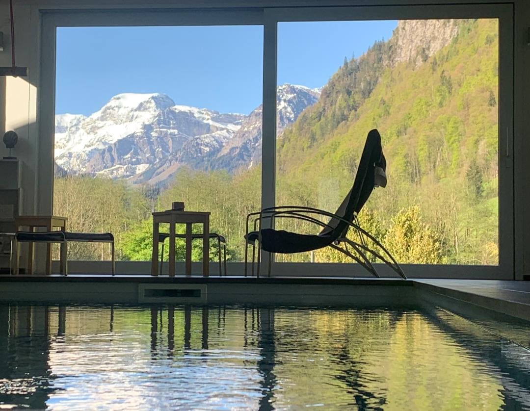 Dirección: Reimen 6, ch-8775 Hätzingen Glamping: ¡nuestra especialidad! Este alojamiento especial es ideal para todos los amantes de la acampada, o para aquellos que quieren convertirse en uno. Lo más destacado es la piscina cubierta climatizada con aseo y ducha de uso privado. En verano, las puertas ventana se pueden abrir y nada se interpone en el camino de la diversión bajo el sol. La posibilidad de comprar en la tienda del pueblo es otra ventaja. La caravana se encuentra en el jardín del propietario. Quien quiera estar solo, puede hacerlo. Quien
