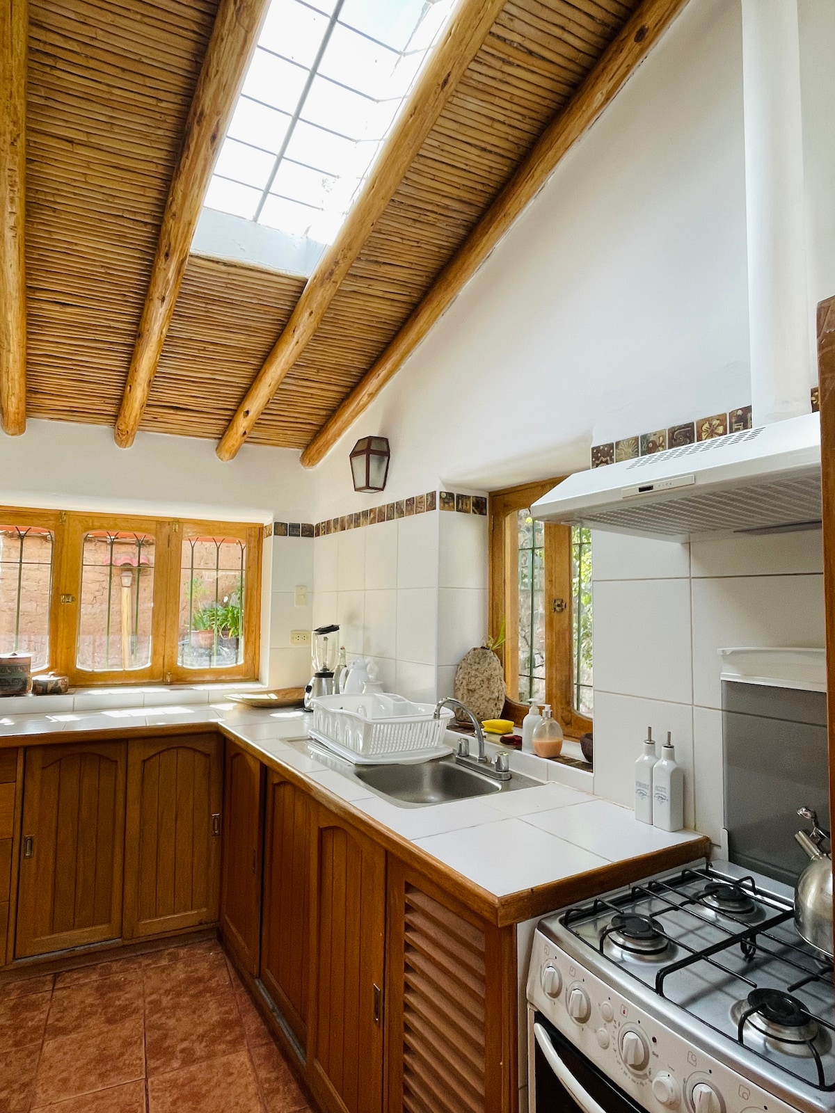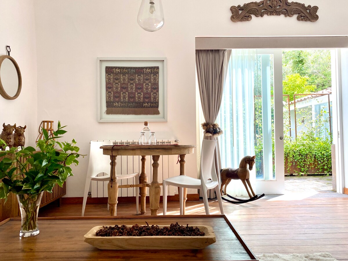 Experience calm and character in our Andean Loft, where light, natural textures and curated details create quiet elegance. Each piece tells a story, from handwoven textiles to vintage finds. Large windows open to a sunny private patio surrounded by greenery. This home rests on sacred Inca land once linked to the lineage of Inca Manco Cápac—just a 10-minute walk from Sacsayhuamán and Plaza de Armas. We recycle and compost, honoring the spirit of this place.