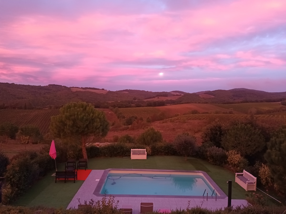 villa rodeada de viñedos con spa