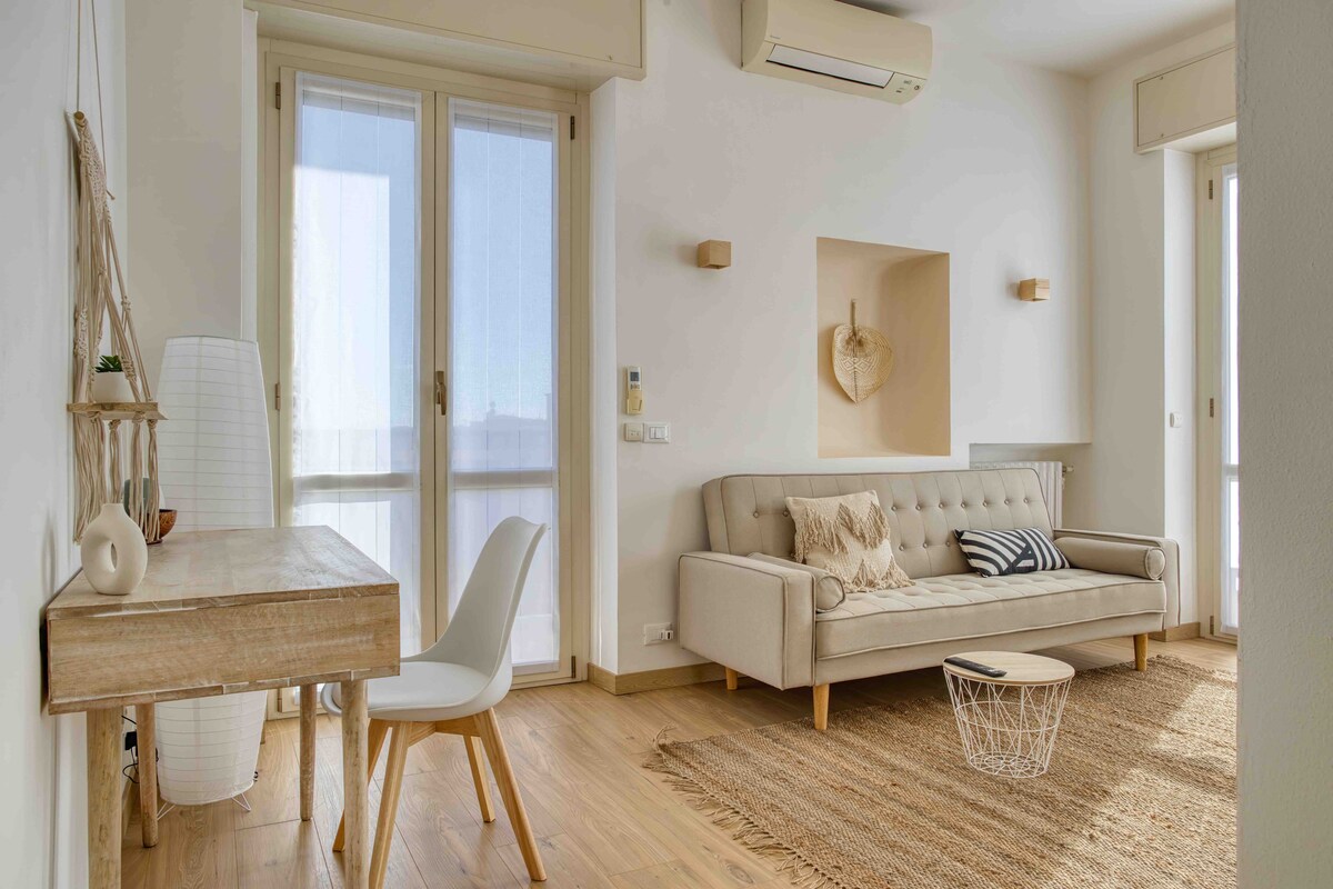 Alójate en un elegante y luminoso apartamento con terraza panorámica en el corazón de Navigli, el barrio más bohemio y vibrante de Milán. Con una vista impresionante del skyline de la ciudad, relájate con una bebida en el rincón bar al aire libre, cena bajo las estrellas o contempla atardeceres inolvidables desde la terraza o desde la cama de la habitación. Un espacio equipado, refinado y funcional, ideal tanto para viajes de trabajo como de placer, para una experiencia sin igual.