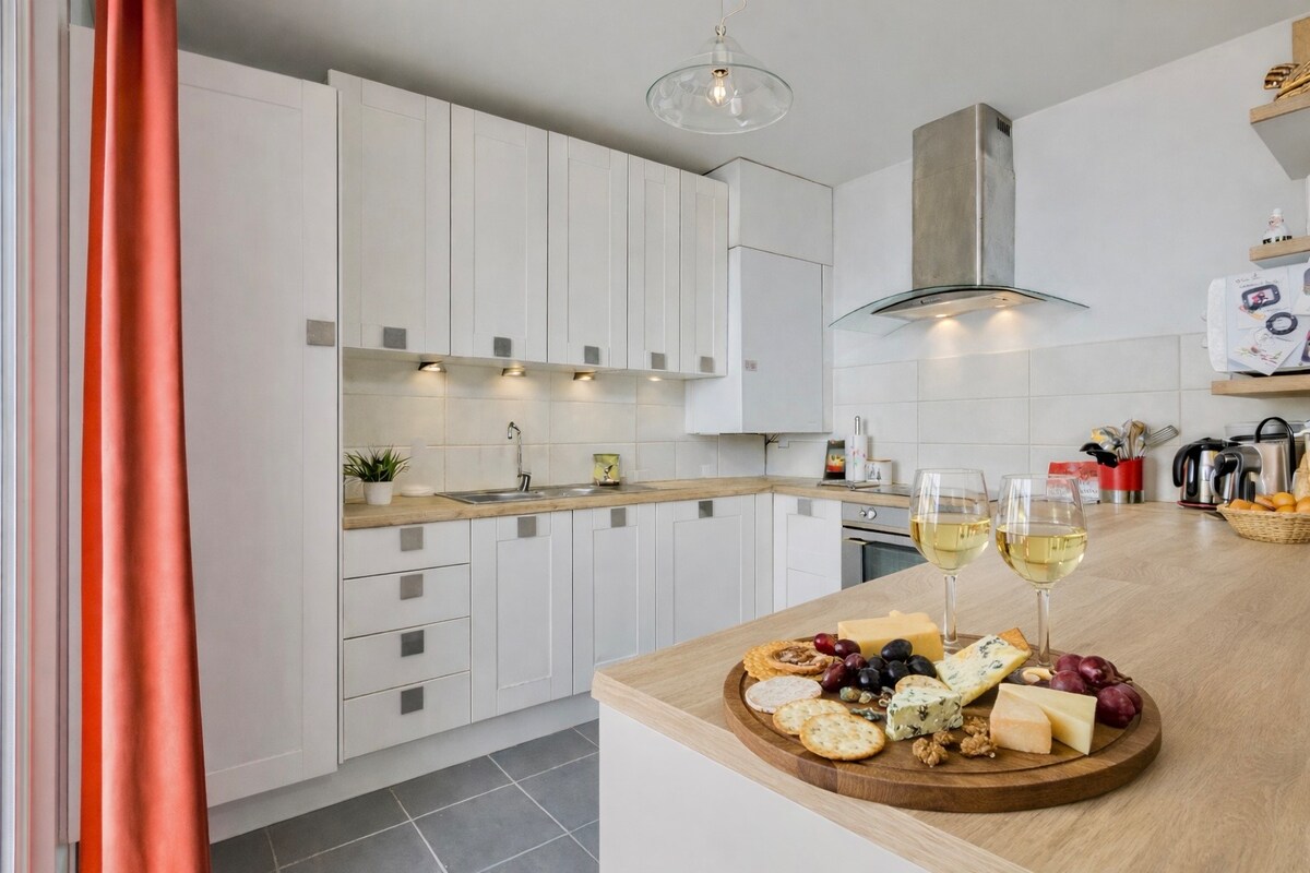 Disfrute de una estancia relajante cerca de Ginebra: estacionamiento, garaje SUV/Sedán, balcón con vistas a los Alpes. Recién renovado✨ ✈️ Aeropuerto: 10 min 🚌 Parada Fruitière– línea 60 a 100 m 24/24 (Grand-Saconnex – Place des Nations – Cornavin) 🚗 Ginebra centro: 20 min en transporte o automóvil 🏙️ Ferney-Voltaire: 4 min Cocina totalmente equipada con lavadora y ablandador de agua. Balcón accesible desde cada habitación, con vistas a los Alpes, ideal para una estadía profesional o turística a 500 m de Suiza.