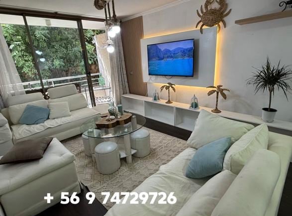Habitaciones decorados de forma minimalistas para un buen descanso y que te sientas a gusto o como en casa , Estarás cerca de Vespucio y La Norte sur Mis espacios ofrecen lindas vistas desde la terraza en un espacio privado y desde las habitaciones es un pequeño jardín la cocina está muy bien equipada para que puedas cocinarte lo que quieras horno y microondas aparte con logia con lavadora y secadora . Al lado del Strep Center con supermercados farmacias cafetería restaurant piscina jardín