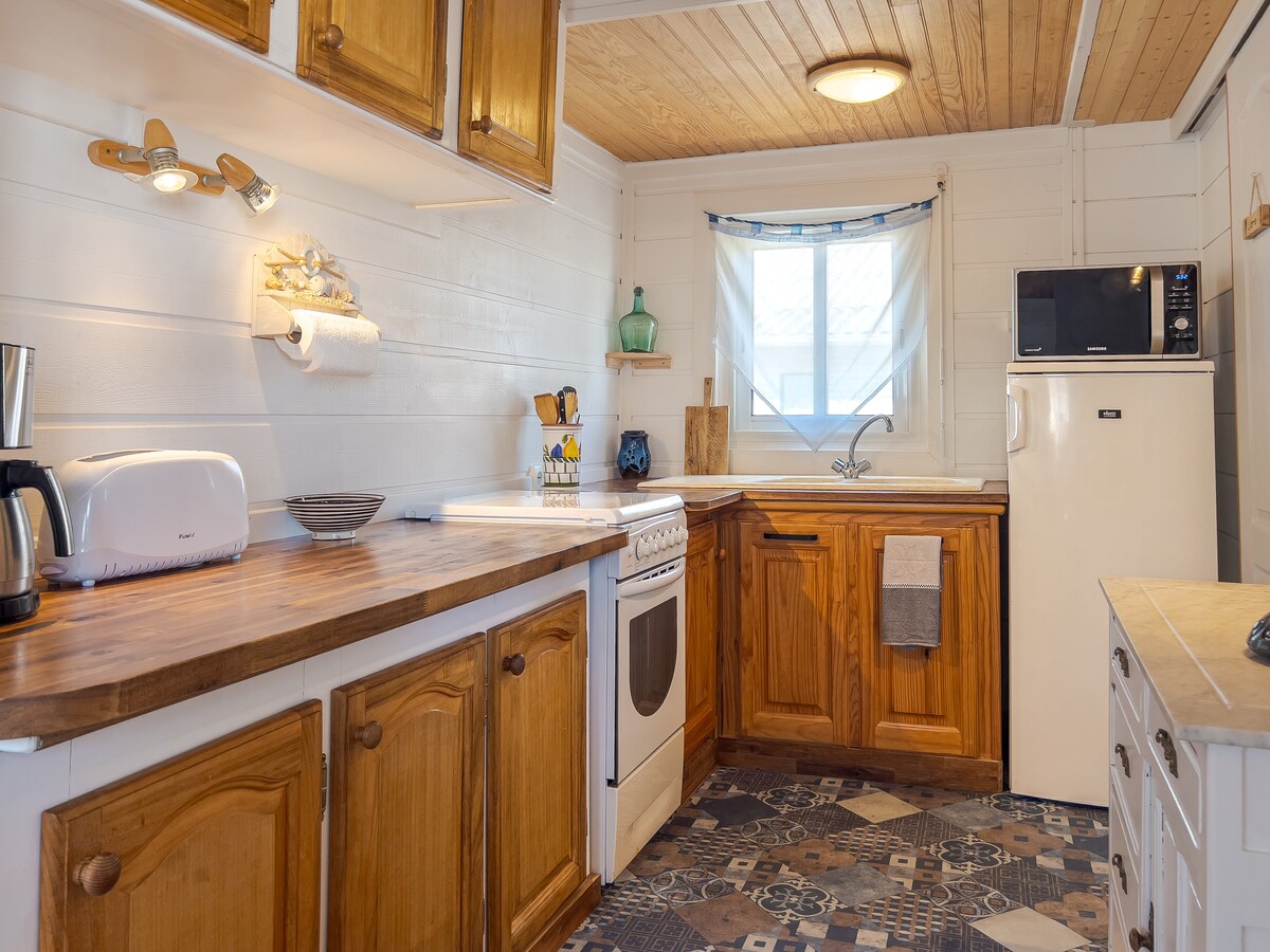 Alójate en un chalet de madera verdaderamente tradicional sobre pilotes, construido en 1936 y entre los últimos en haber conservado el espíritu y la apariencia originales de los históricos chalets de playa de Gruissan. A solo 150 metros de la playa y a pocos pasos de tiendas y restaurantes locales, disfrutarás de una ubicación privilegiada donde todo se puede hacer a pie o en bicicleta. Un cálido y auténtico refugio de paz, que combina el encanto de época y la comodidad moderna, extendido por una gran terraza de madera que se convierte en un verdadero espacio de estar al aire libre.