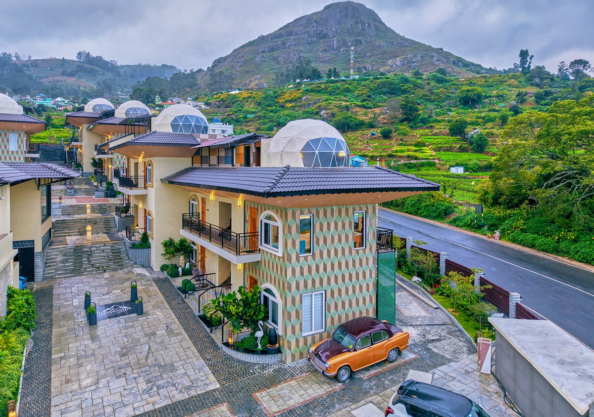 This stylish and unique place sets the stage for a memorable trip. Nestled amidst the misty hills of Ooty and overlooking the breathtaking peaceful nature retreat near Masinagudi, offers a perfect blend of luxury, nature, thoughtful hospitality, best scenic resort for relaxation. For a unique experience, indulge in our exclusive glamping dorms a perfect mix of adventure and comfort, set against panoramic hill views that gives you family-friendly and couple-friendly stay.