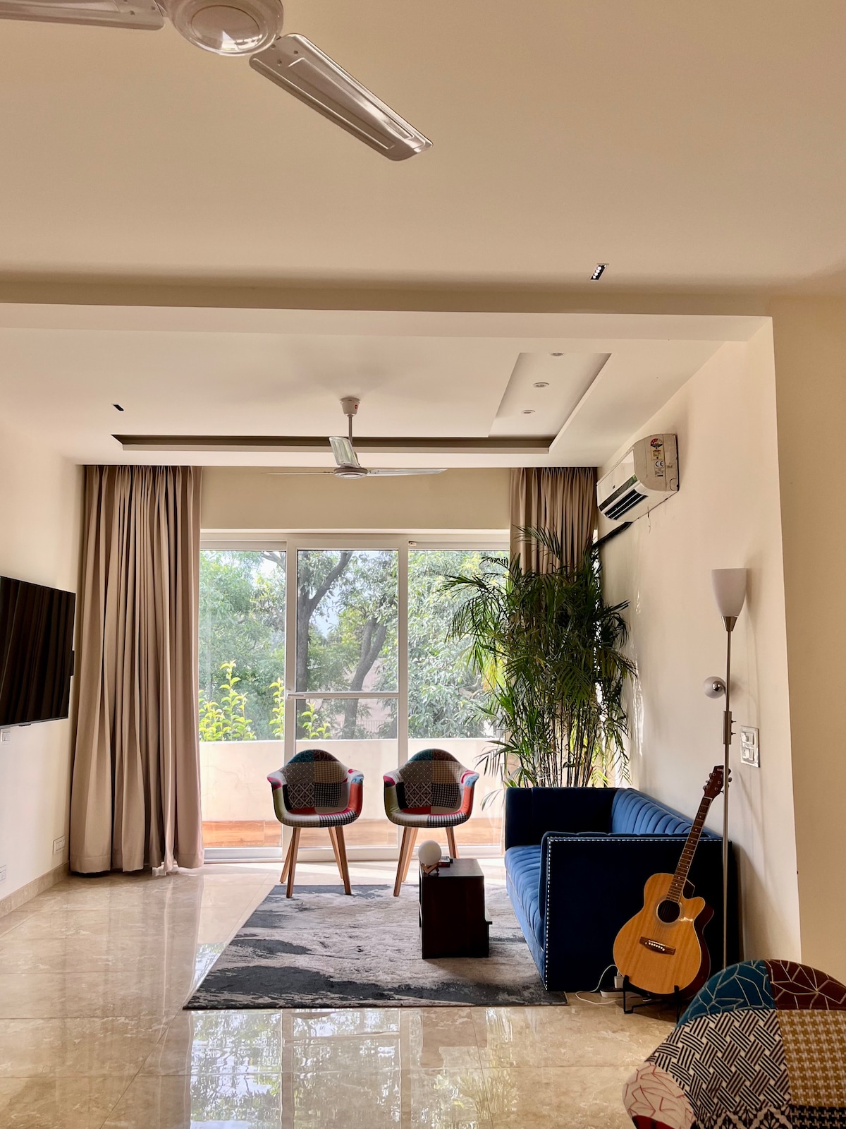 Esta habitación ofrece todo lo necesario para una estancia cómoda. El dormitorio tiene una cama doble con mucha luz natural. Acurrúcate con un libro en el exuberante parque verde frente al balcón o sal a disfrutar de la puesta de sol en nuestra terraza y da un relajante paseo por uno de los hermosos parques de Chandigarh. A solo 15 minutos del aeropuerto, este apartamento es perfecto si buscas explorar lo que Chandigarh tiene para ofrecer y, al mismo tiempo, tener fácil acceso a todos los servicios de la ciudad.
