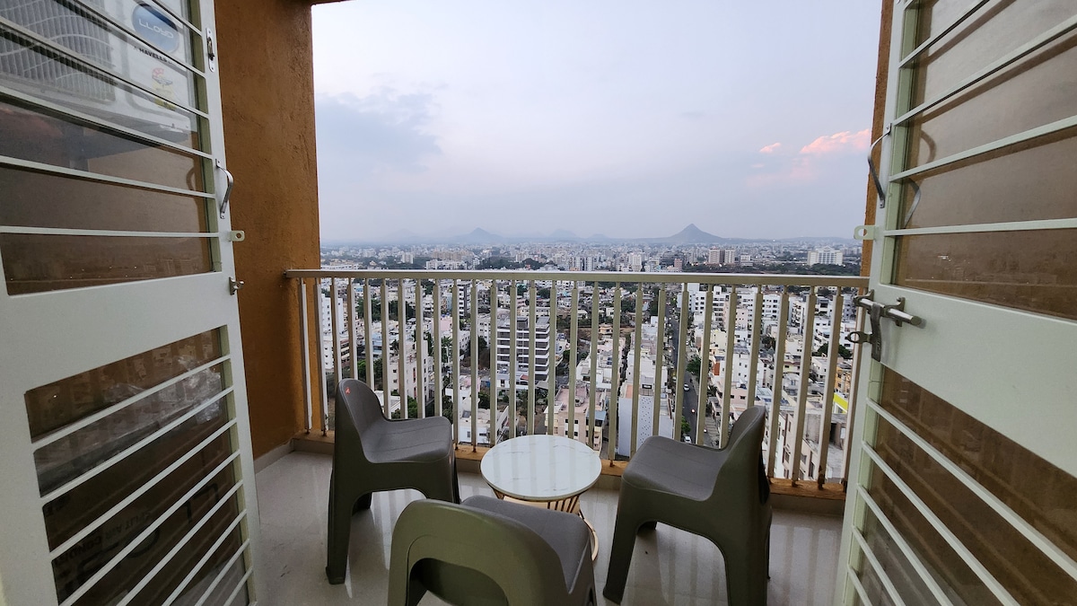 ¡Te damos la bienvenida a tu hogar lejos de casa en el centro de Nashik! Nuestro luminoso y espacioso apartamento ofrece todo lo necesario para una estancia relajante. Con una ubicación privilegiada en Sadguru Nagar, tendrás acceso rápido a los centros de negocios, mercados, restaurantes y principales atracciones de Nashik, como los viñedos de Sula y los famosos templos. Perfecto para: viajeros de negocios, huéspedes de ocio y estadías prolongadas. Lo más destacado : sala de estar luminosa, dormitorio acogedor, wifi de alta velocidad, área de estudio, caja de fiestas, gimnasio, cocina lista para cocinar.