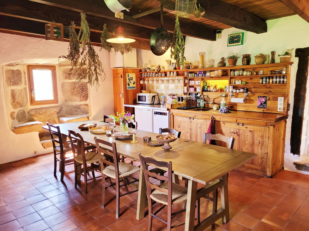 ¿Necesita desconectar en la naturaleza, de confort acogedor junto al fuego? ¡Esta antigua casita de piedra y madera, rústica y acogedora está hecha para usted! El jacuzzi nórdico privado y la sauna panorámica están a su disposición durante toda su estancia. Con su chimenea, su terraza de lauzes, su tranquilidad: el lugar ideal para hacer una verdadera pausa tanto en verano como en invierno. ¡Cocooning en pareja, actividades en la naturaleza en el bosque y en las mesetas de Auvernia! ¡Time to relax!