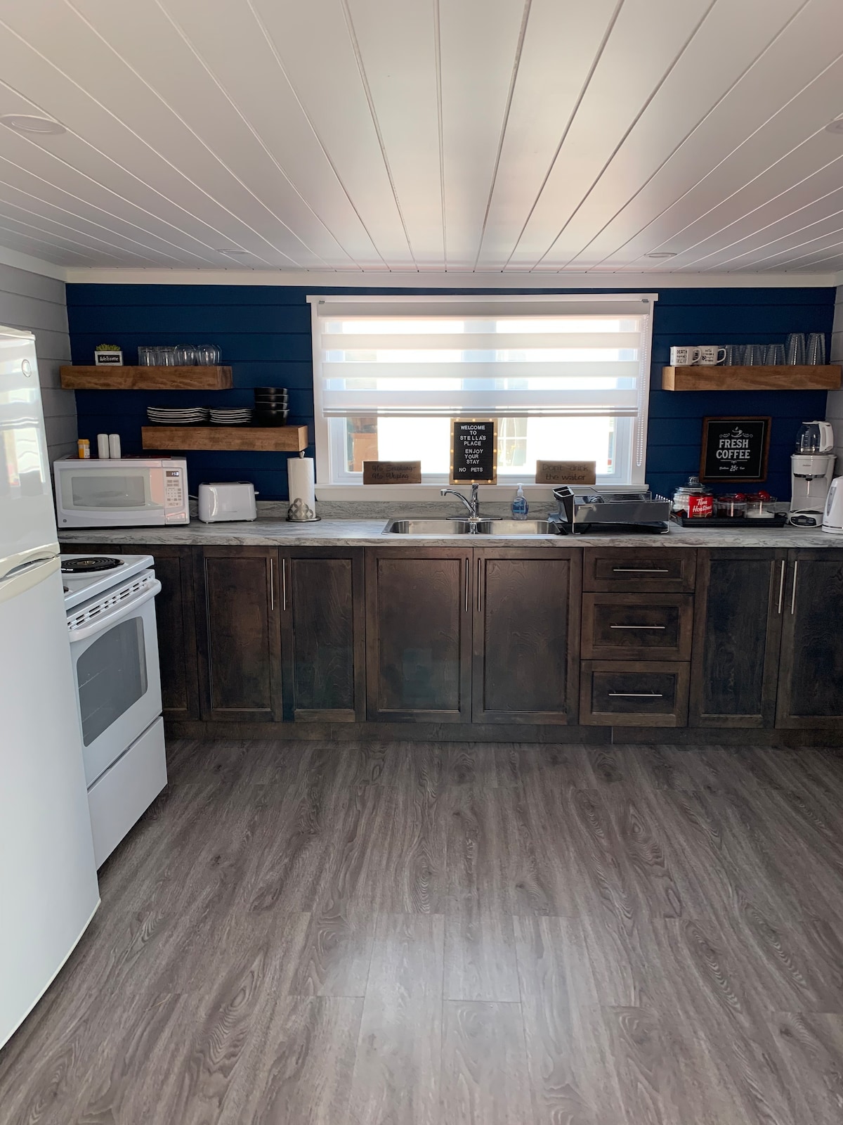 Nuestra cabaña rústica de abeto de nueva construcción, con sus suelos, paredes y techos, todo hecho de madera de abeto local molida aquí mismo, lo que le da un acogedor aspecto amaderado para las vacaciones perfectas. Nuestra cabaña de diseño rústico cuenta con un amplio espacio para relajarse y entretenerse, viene con su propio dormitorio privado con una cama tamaño queen, baño/ducha, además de un sofá cama extraíble. Nuestra cocina está completa con electrodomésticos para todas tus necesidades culinarias, o siéntate afuera y disfruta y relájate.