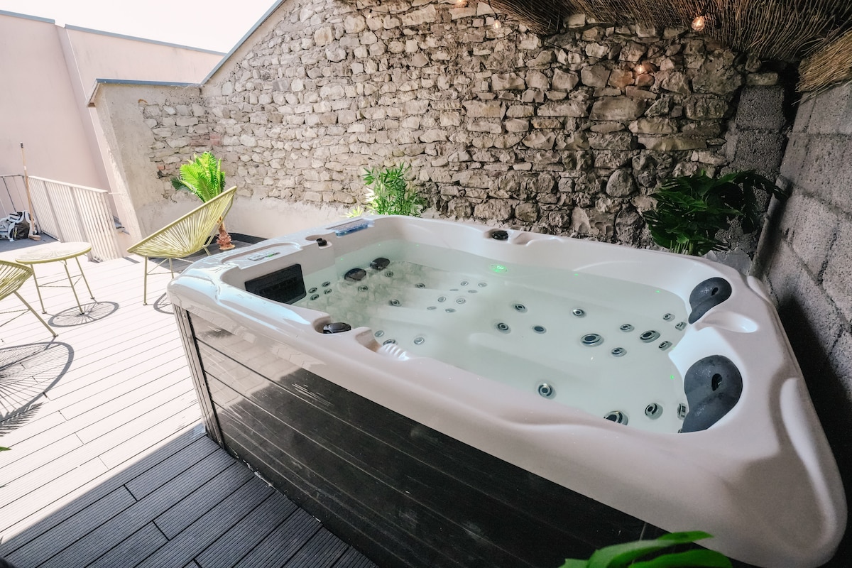 Apartamento de lujo CLIMATIZADO de 50 m² amueblado con SPA / Balneario / Videoproyector Pantalla Motorizada 3 m x 2 m. totalmente privatizado para 2 personas MÁXIMO, en el que encontrará todo lo necesario para olvidarse de la rutina y evadirse. Posibilidad de añadir una cama de una o dos plazas adicionales bajo petición, con 72 horas de antelación (con suplemento)