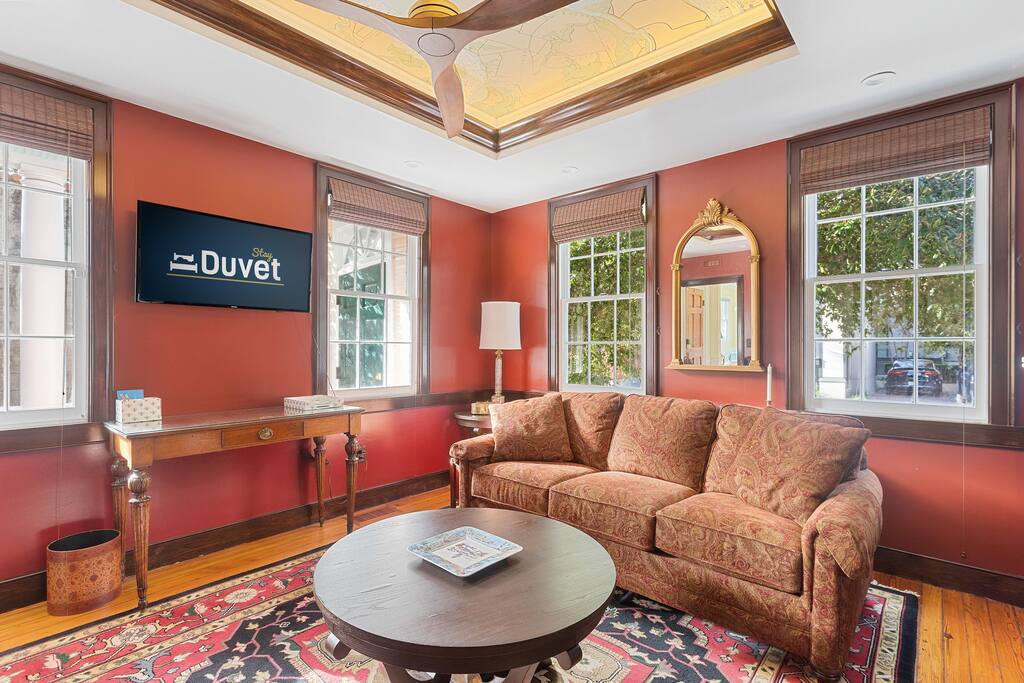 Despiértate renovado en la cama con dosel tallado y acurrúcate en el sofá de cuero bajo los tragaluces de esta encantadora casa de ladrillo construida en 1802. Reúnete con los tuyos para desayunar tranquilamente por la mañana o tomar unos cócteles por la tarde en el luminoso patio ajardinado. #BL005522012017 No recomendado para niños. Toda esta casa fue renovada en 2017. Esta encantadora casa de campo tiene capacidad para seis personas. El primer piso tiene un sofá cama tamaño queen en la sala de estar, además de un baño completo junto a la sala de estar. El segundo piso tiene dos dormitorios: una cama tamaño king con baño privado y una cama tamaño queen con baño privado. Los dormitorios y la sala de estar cuentan con televisores nuevos de pantalla plana. Suelos de madera y baldosas en todas partes. Nuevos electrodomésticos de acero inoxidable y encimeras de granito en la cocina. ¡Las sábanas son de algodón egipcio y las toallas son de felpa! ¡La casa de huéspedes es muy cómoda y está limpia! Hay un patio privado iluminado y ajardinado con una mesa y sillas y un banco de Charleston. Los huéspedes tienen acceso a toda la casa y a un patio privado, ajardinado e iluminado con mesa y sillas. Hay aparcamiento en el lugar para 2 coches. No vivo en la propiedad, pero estoy disponible si es necesario. La propiedad se encuentra a unos 300 pies de King Street, el principal centro comercial y gastronómico en el corazón del centro de Charleston. La propiedad se encuentra cerca de la intersección de las calles King y Calhoun. Marion Square, Gaillard Center y otras actividades están a poca distancia. Esta ubicación está en el centro de la actividad del centro de la ciudad, con un gran acceso a tiendas y restaurantes a pie. DASH es un servicio de transporte gratuito para el área histórica de la península de la ciudad de Charleston. Una de las paradas del tranvía está a media manzana.