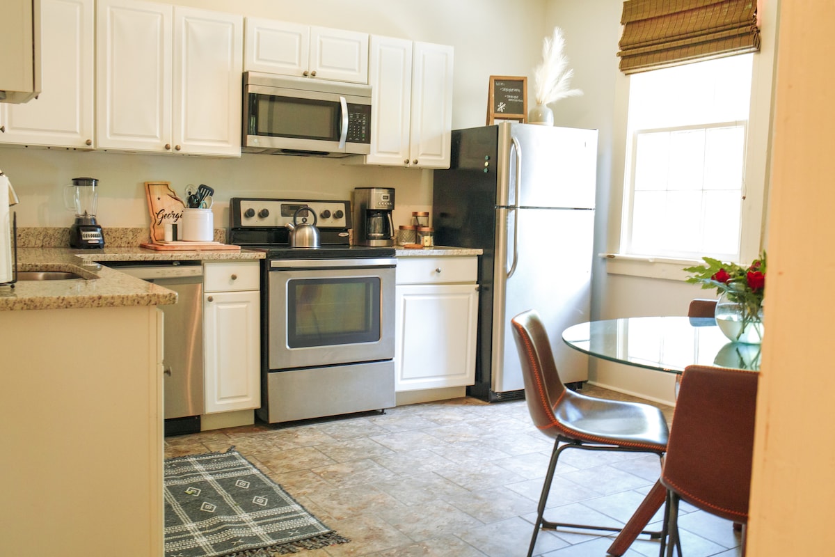 Encantador apartamento tipo loft en el centro de Coachman. A solo un par de manzanas de todos los servicios y atracciones, como Whitewater Rafting y la vida nocturna, y a solo 8 a 10 minutos de Fort Benning, dependiendo del tráfico. Tranquilo patio cerrado para relajarse y descansar. Wifi de más de 300 megas de alta velocidad, lavadora secadora, cocina completa con lavavajillas. ¡Y un televisor de pantalla grande para ver Netflix, Vudu, Hulu, etc.! ¡Ofrecemos café y té de cortesía y jabones, acondicionador y champú para tu primera noche!
