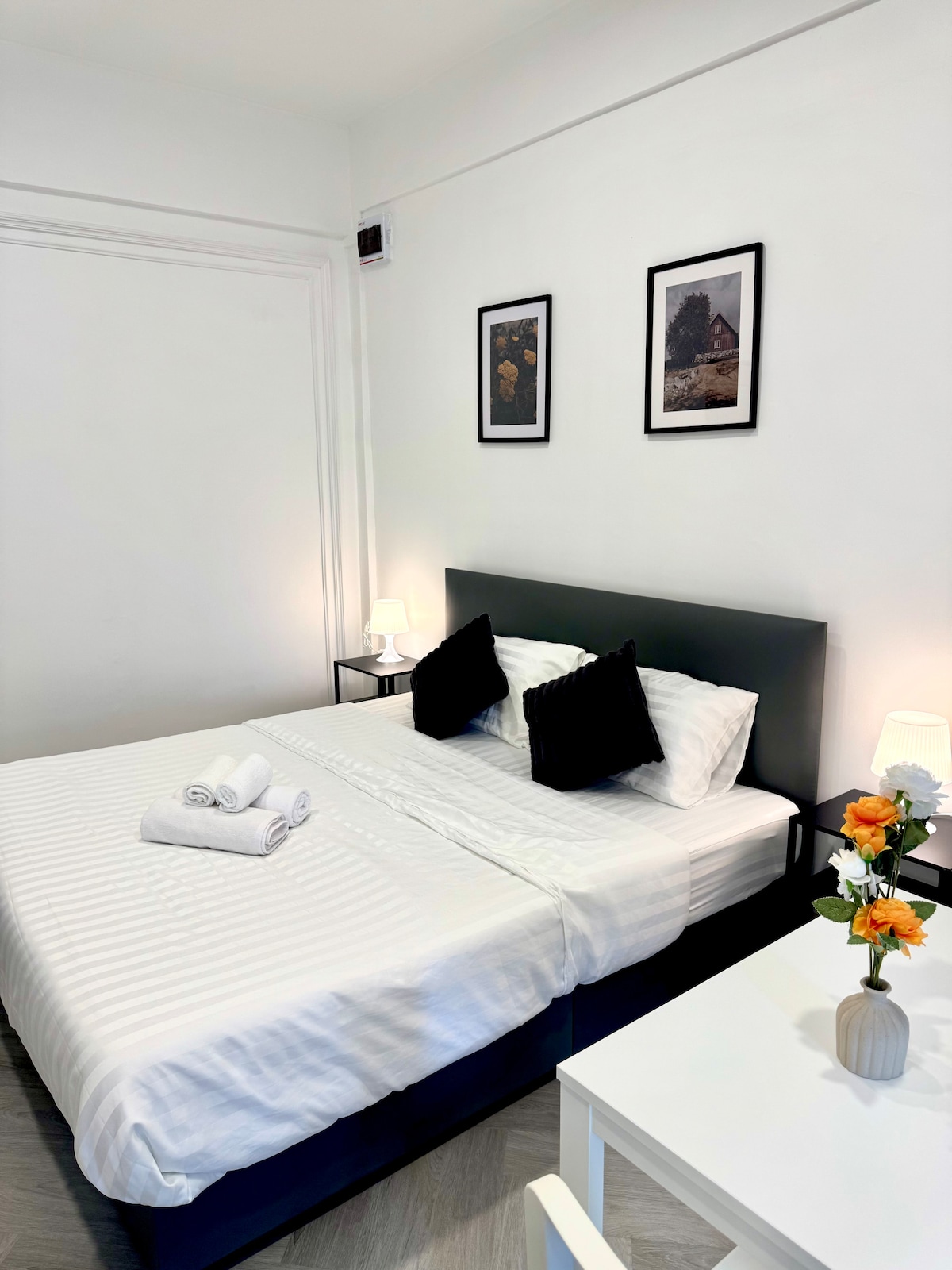 Una habitación tipo estudio recién reformada con 1 cama tamaño king supercómoda, baño privado y zona de minidespensa con nevera microondas. A solo 450 metros del BTS Sanam Pao y a 650 metros del BTS Ari. ** Lee la sección «Otros aspectos a tener en cuenta» antes de hacer una reserva :)