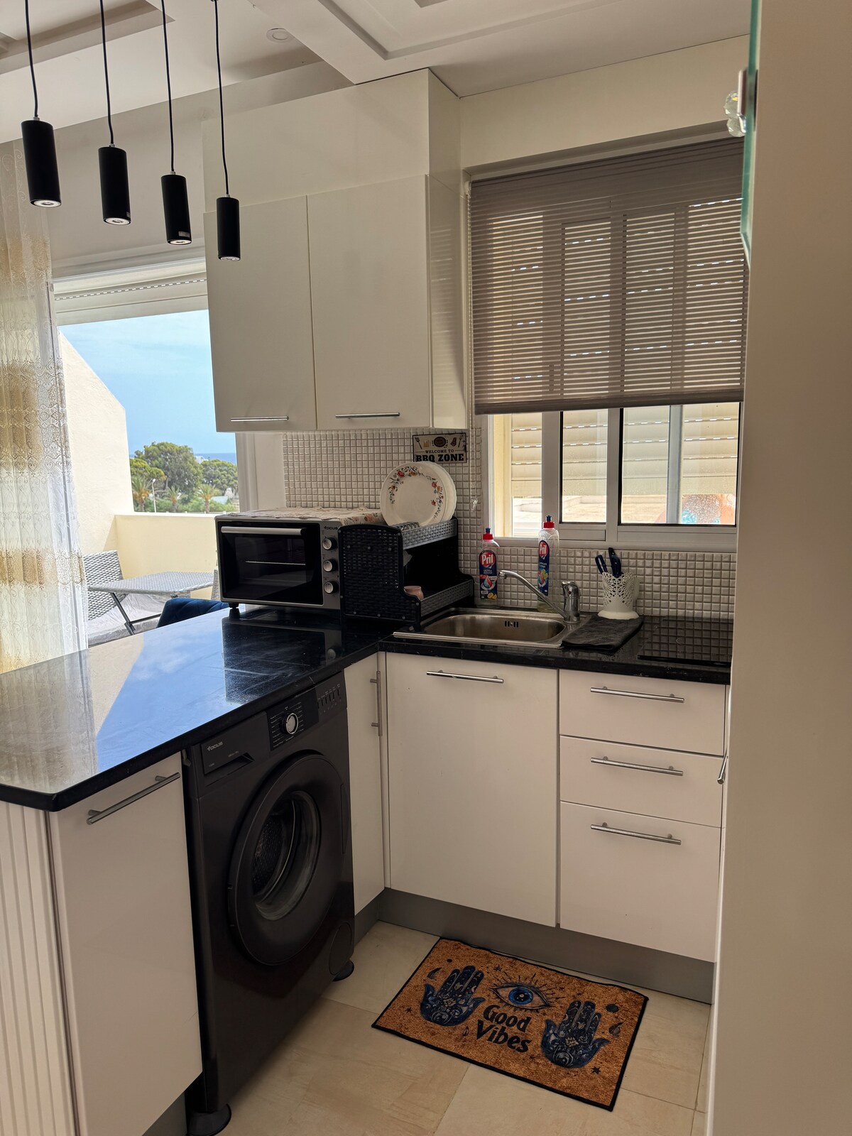 Te damos la bienvenida a nuestro moderno apartamento de 3 habitaciones ubicado en la ciudad santa de Kairouan. Nuestro departamento es el hogar perfecto lejos de casa para familias o grupos que buscan una estancia cómoda y elegante. La ubicación es ideal para explorar Kairouan, una de las ciudades más sagradas de Túnez. La Gran Mezquita, una de las mezquitas más grandes del norte de África, está a solo 10 minutos en auto. La medina, declarada Patrimonio de la Humanidad por la UNESCO, también está cerca y ofrece una visión de la rica historia y cultura de Kairouan.