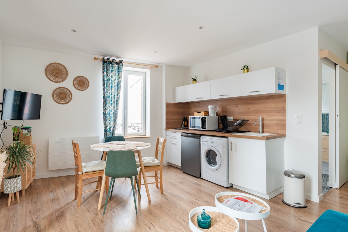Hemos renovado completamente nuestro apartamento en el centro de la ciudad para convertirlo en un espacio cálido y agradable para vivir. Todo está pensado para su comodidad: una acogedora sala de estar, una cocina equipada, un dormitorio con ropa de cama cómoda y un baño moderno. Encontrará todo lo necesario para una estadía sin preocupaciones: WiFi, lavadora, secador de pelo… Ya sea que esté de viaje o de viaje, ¡estaremos encantados de darle la bienvenida!
