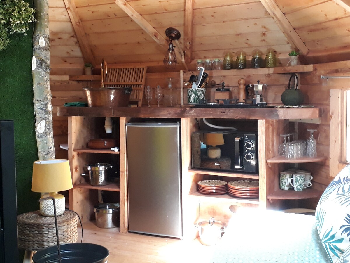 Pour une nuitée, un week-end ou la semaine, venez vous ressourcer dans une cabane chaleureuse en bois, sur pilotis et tout confort ! Vous profiterez d'une prestation para-hôtelière, le lit (queen size) est fait, les serviettes de toilette sont fournies, le ménage et la désinfection de la chambre sont inclus. La grande baignoire vous promet des moments de relaxation. L'espace cuisine vous permet d'être indépendant..