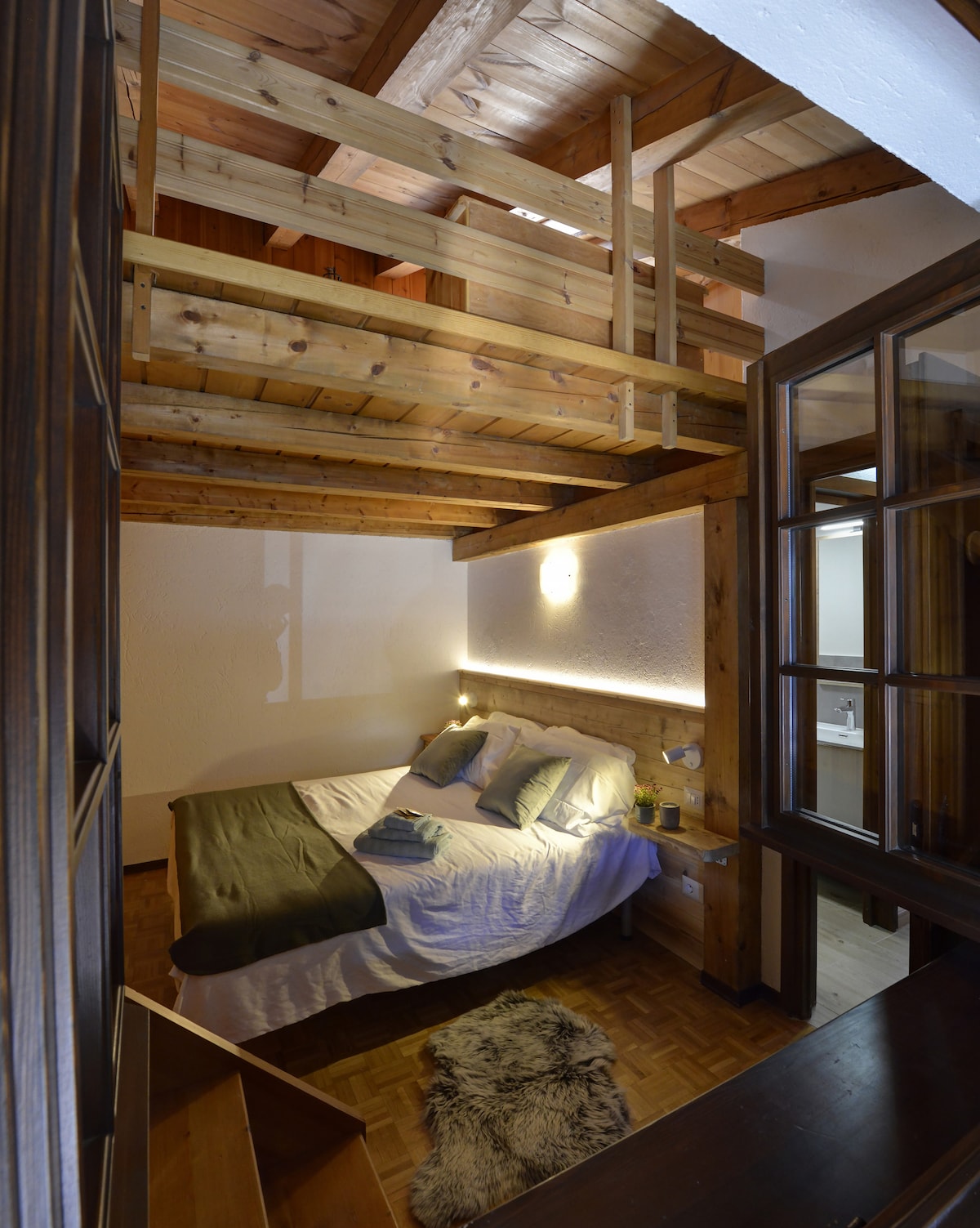 Amplio apartamento en un chalet recién restaurado a 2 km de la autopista, a 15 minutos del centro de Courmayeur, a 20 minutos de La Thuile y a 10 minutos del spa Pre'-Saint-Didier. Una habitación doble, una habitación doble con camas individuales, ambas con baño y cabina de ducha, sala de estar con dos sofás cama y bastones de madera. Sistema de wifi profesional. En 5.min Supermercado abierto 8-20 y una farmacia. Un oasis de paz en un pueblo tradicional y encantador en el que relajarse después del deporte o la diversión en Courmayeur.