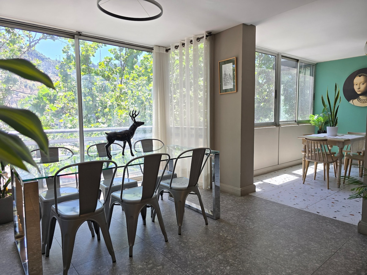 Bienvenidos a Casa Ruka El espacio perfecto para compartir en Santiago. Este amplio departamento de lujo (200 m²) en Providencia está diseñado para grupos, familias o viajes con amigos que buscan comodidad, ubicación y una experiencia única. 🛏 Capacidad hasta 8 personas 📍 Ubicación privilegiada A pasos del metro Salvador, frente al Cerro San Cristóbal y cercano a los principales barrios turísticos de Santiago. 🛋 Espacios para compartir Living, comedor y áreas comunes