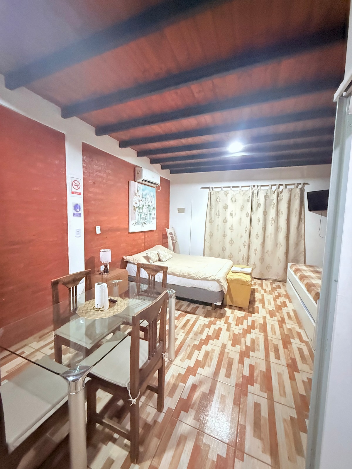 Relajate en este alojamiento único y tranquilo. Ideal para pasar tu estadía en San Juan ubicado en una zona residencial y muy segura con estacionamiento cerrado y gratuito a 10 minutos del centro de la ciudad, con fácil acceso, y con comercios variados y cercanos para abastecerse. Con total predisposición para ayudar y asesorar de parte de los dueños en la casa de al lado.
