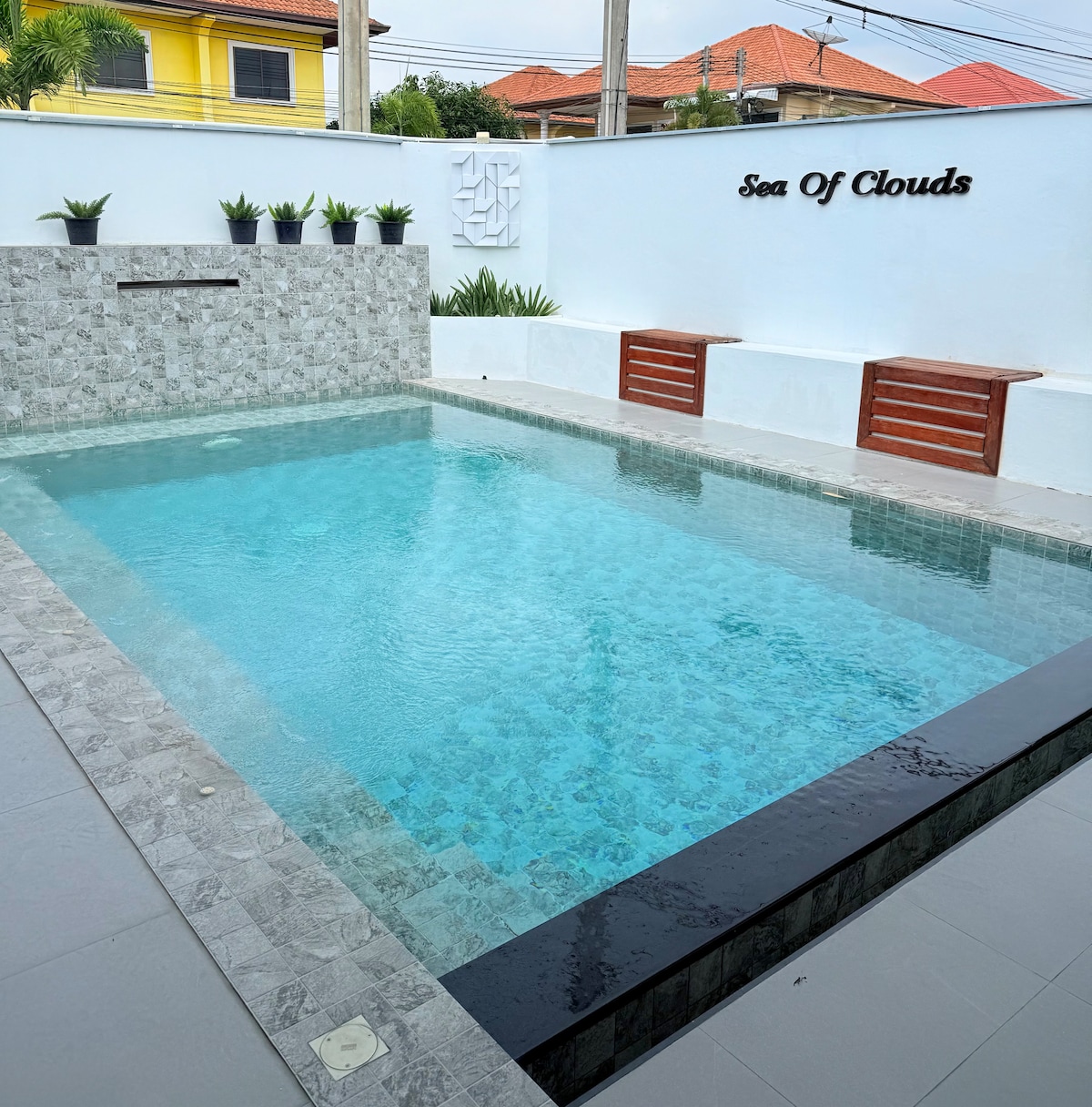 Descripción General del anuncio Esta villa con piscina se encuentra en la zona de Jomtien, Pattaya, y cuenta con 5 dormitorios y 6 baños. Cada dormitorio tiene su propio baño y un inodoro inteligente para garantizar la privacidad.Villa recién renovada, espaciosa y luminosa, con patio privado y piscina privada, puede alojar cómodamente a 10-12 personas, perfecta para familias, amigos o vacaciones en grupo. Ubicación La villa está a solo 100 metros de la playa de Jomtien, a pocos pasos.Hay restaurantes, cafés, farmacias y tiendas de conveniencia a 300 metros del barrio, lo que hace que la vida sea cómoda.Acceso rápido a las principales atracciones en auto: • 3 minutos: mercado nocturno de Jomtien. • A 10 minutos: Central Department Store, Chinatown, Terminal 21, 79 Adult Show. • A 10 minutos: Walking Street, Grand Island Pier, Mermaid Internet-famous Restaurant. Ya sea la playa, las tiendas o la vida nocturna, es fácil de organizar. Aspectos más destacados de la casa • Las 5 habitaciones son suites privadas con cortinas inteligentes. • 6 baños, no abarrotados incluso con varios huéspedes • Piscina y jardín privados, mantenidos regularmente. • Amplia sala de estar y comedor, adecuada para reuniones y ocio • Aire acondicionado completo, wifi de alta velocidad. • Barrio tranquilo, seguro y familiar Mayordomo Servicio de mayordomo las 24 horas, asistencia para el registro, indicaciones. Servicios opcionales de valor agregado Bangkok/Pattaya recogida y entrega, servicios de alquiler, alquiler de coches, alquiler de barcos, reservas de atracciones y entradas para espectáculos, chef privado en casa, barbacoa en casa, traducción y otros servicios están disponibles para hacer tus vacaciones más convenientes y fáciles.