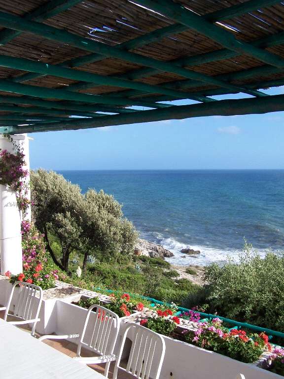 Villa Rita se encuentra en una zona llamada Piazza Palatina en el municipio de Terracina, en una colina con vistas al mar. Villa Rita forma parte de una villa bifamiliar situada en la planta baja, completamente inmersa en una exuberante vegetación mediterránea. Olivos, cipreses, almendros y algarrobos enmarcan esta espléndida vivienda con vistas al mar, desde cuyas terrazas se puede disfrutar de un paisaje de incomparable y sugerente belleza.