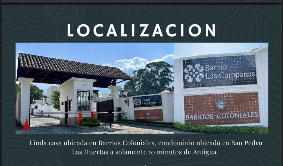 A un paso de La Antigua Guatemala se encuentra esta exclusiva residencia. Un alojamiento con un verdadero entorno típico antigueño y vistas espectaculares a los volcanes de Agua, Fuego, y Acatenango. Contamos con casa club, piscina, cancha de tenis, áreas verdes, y garita con seguridad las 24 horas.