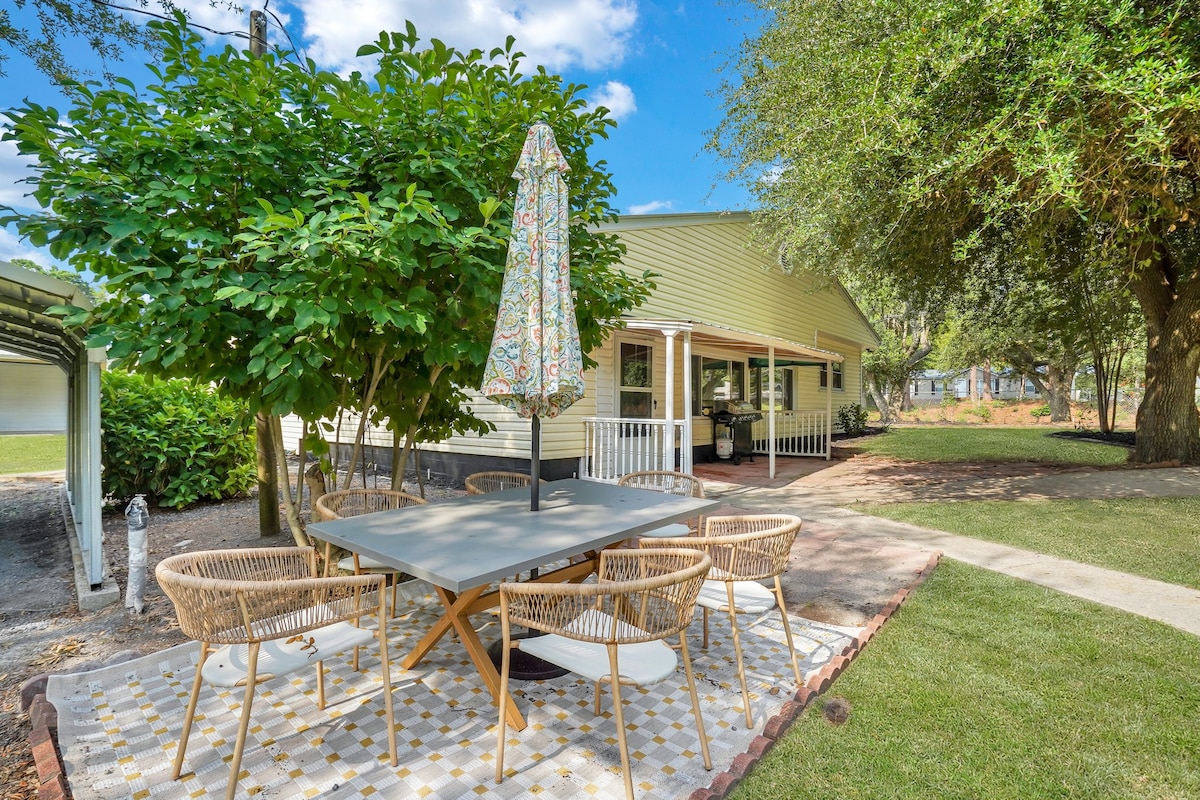 Estarás cerca de todo cuando te hospedes en este bungalow céntrico. Estás a 1 minuto a pie de los hermosos jardines de lirios de Swan Lake. Conduce al centro de Sumter en 4 minutos y a Shaw AFB en 15 minutos. Disfruta del acogedor porche o de la chimenea al aire libre con asientos y canasta de baloncesto. Hay un patio vallado para niños/mascotas. 3 dormitorios/1 baño; habitación adicional con sofá, TV, juegos/libros/juguetes. Amplia cocina y lavandería para tu comodidad. Disfruta de wifi gratuito y televisores inteligentes. Soy agente inmobiliario con licencia.